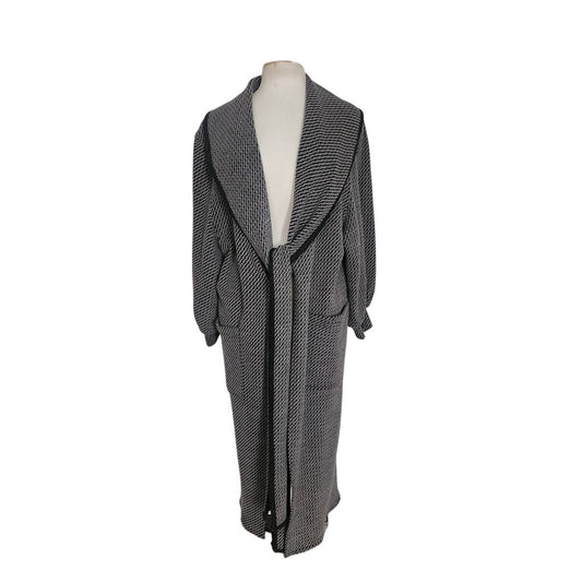 Vintage Y2K Houndstooth Coat Gray Herringbone Wool Large Collar Ellen Tracy / M