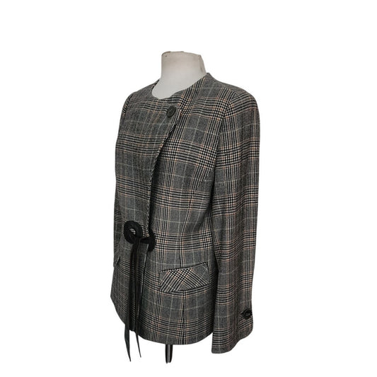 Vintage 2000s Armani Collezioni Blazer Wool Plaid Jacket Leather Sash Tie