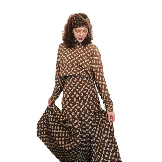 Vintage 1980s GENNY Blouse + Skirt Set Brown White Paisley Silkprint