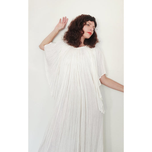 Vintage 1970s Amerikan Climax Tent Dress White Cotton Gauze Angel Butterfly Sleeves