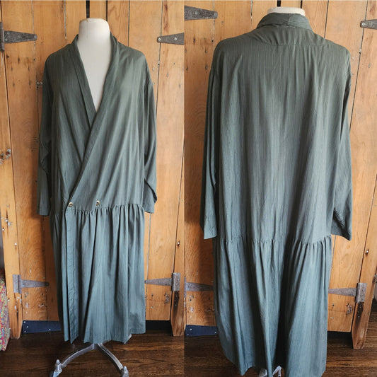 Vintage 1980s J Morgan Puett Dress Green Silk Drop Waist One Size