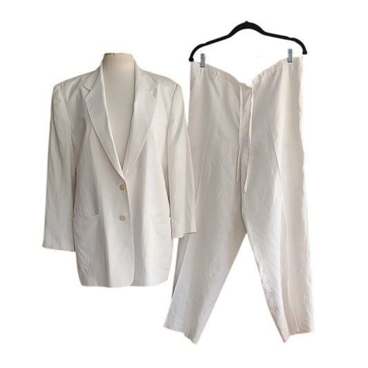 Vintage 1990s DKNY White Linen Pant Suit w/Drawstring Waist / M - L