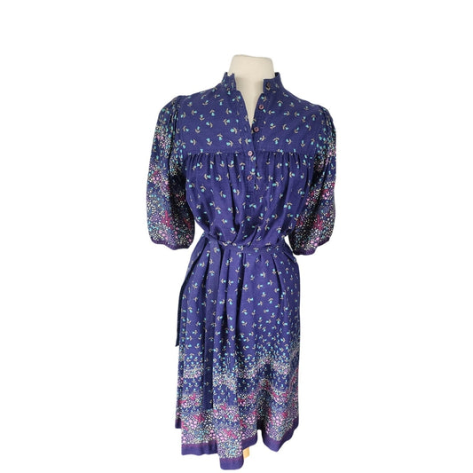 Vintage 70s Floral Print Dress Dark Blue Robbie Bee Neiman Marcus Prairiecore Farmcore Cottagecore Boho Hippie