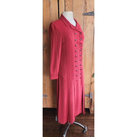 Vintage 1990s Chloe Dress Burgundy Red Wool Crepe Button Down Front S