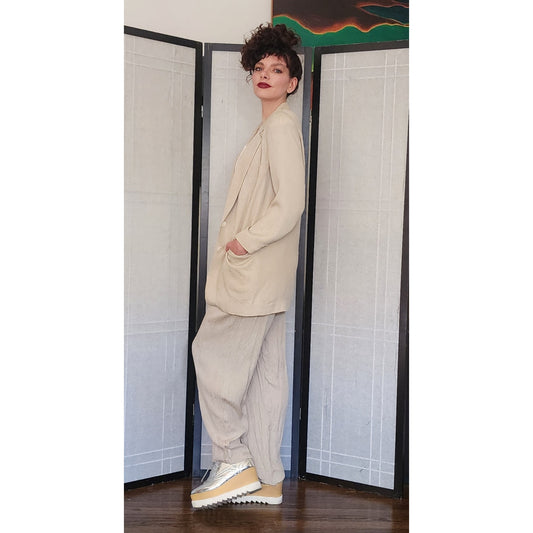 Vintage 80s 90s DONNA KARAN Pant Suit Beige Silk