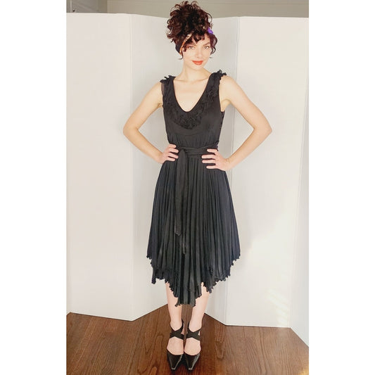 Vintage 2000s Etro Sun Dress Black Cotton w/ Asymmetrical Skirt Medium