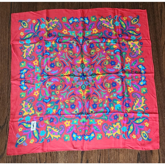 Vintage YSL Silk Scarf Large Square Multicolored Red Floral Print Yves Saint Laurent