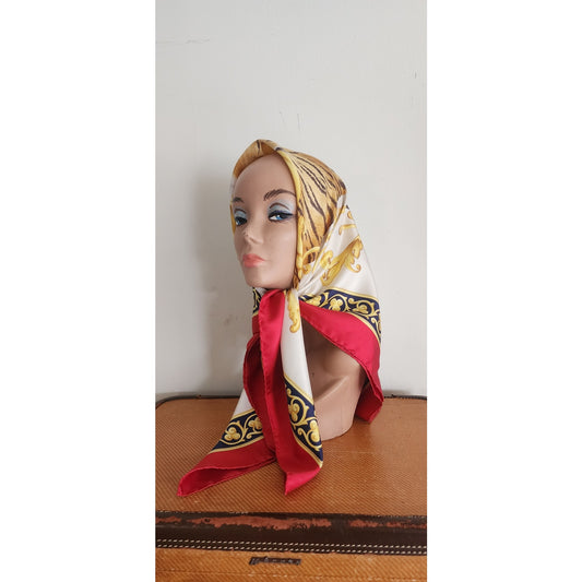 Vintage St John Knit Scarf Silk Print Square Red Black Gold Square