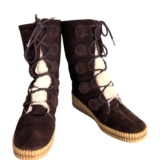 Vintage 70s Winter Boots Ladies Brown Suede + Shearling Size 9