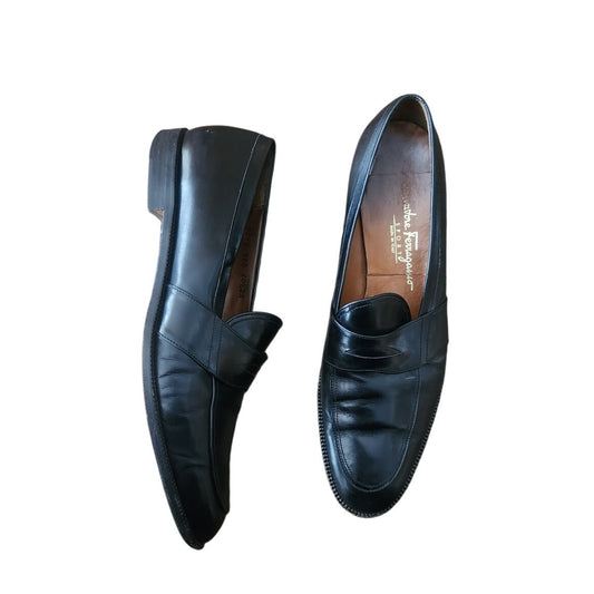Vintage 90s Ferragamo Women's Shoes Penny Loafers 10.5 Narrow Black Leather