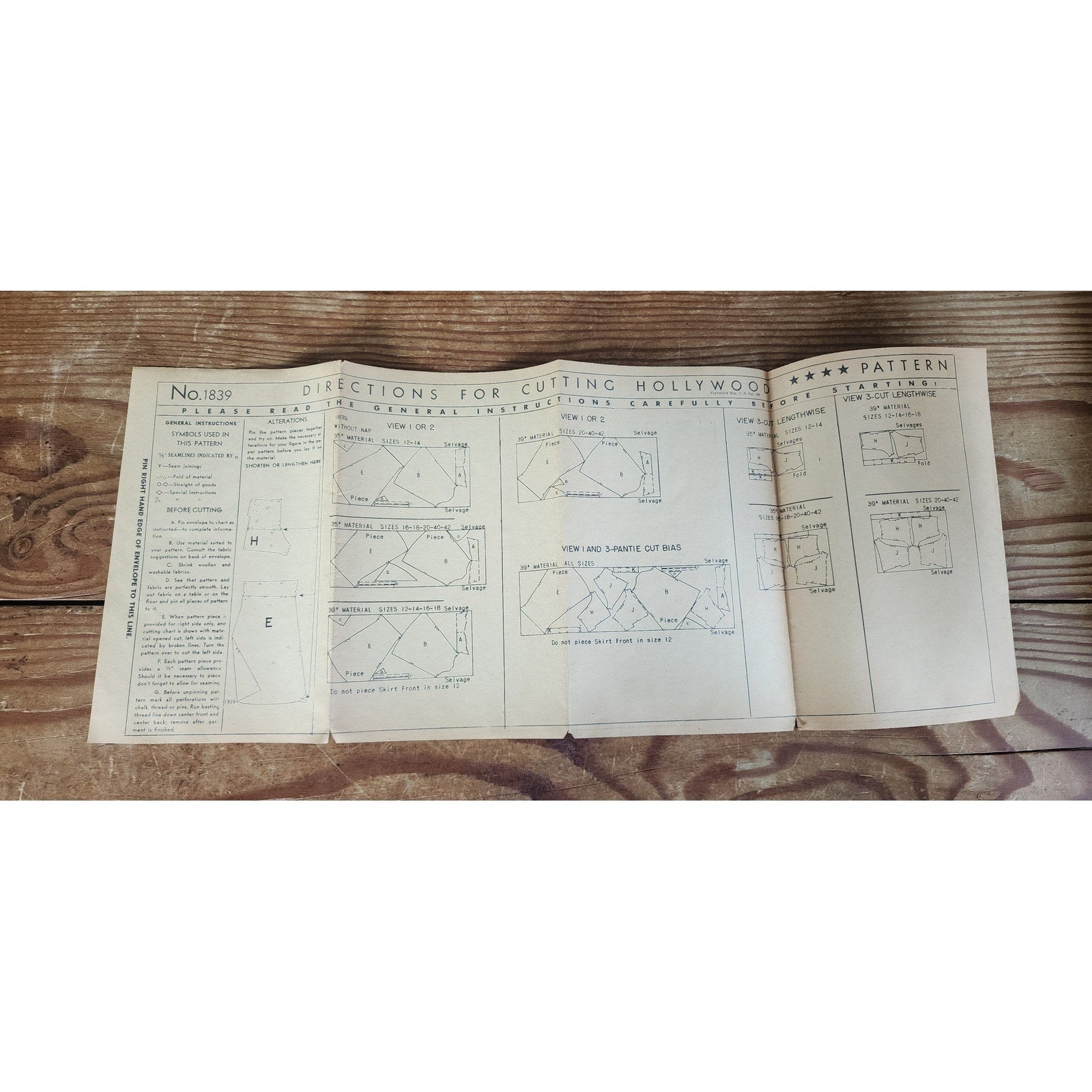 1930s Sewing Pattern: Slip + Pantie Betty Grable Hollywood Pattern of Youth 1839