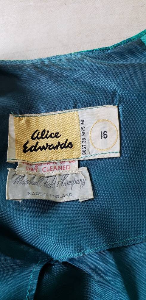 Label: Alice Edwards. Made in England. Marshall Field and Co