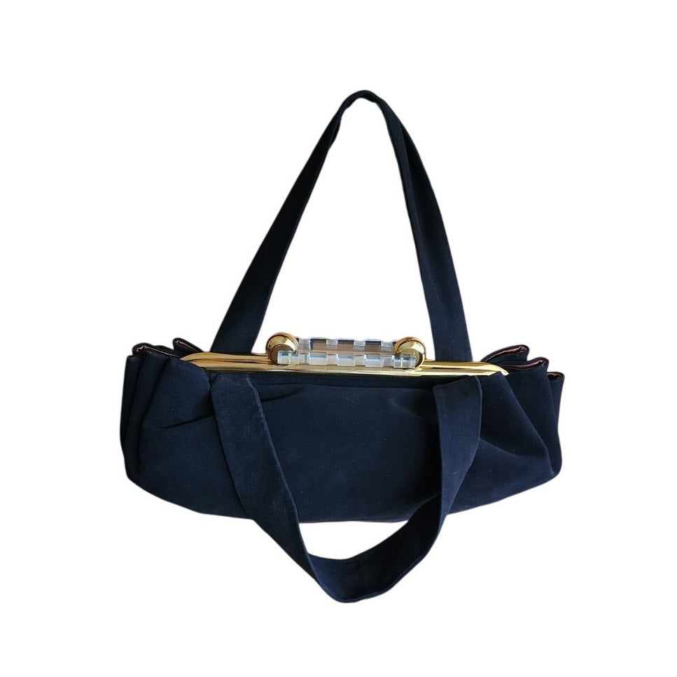 40s Handbag Brown Suede Lucite Clasp Art Deco Koret