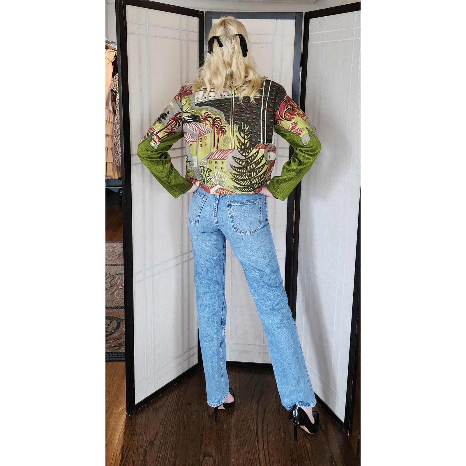 90s Cropped Blazer Novelty Print Sante Fe Style Village Cotton Canvas