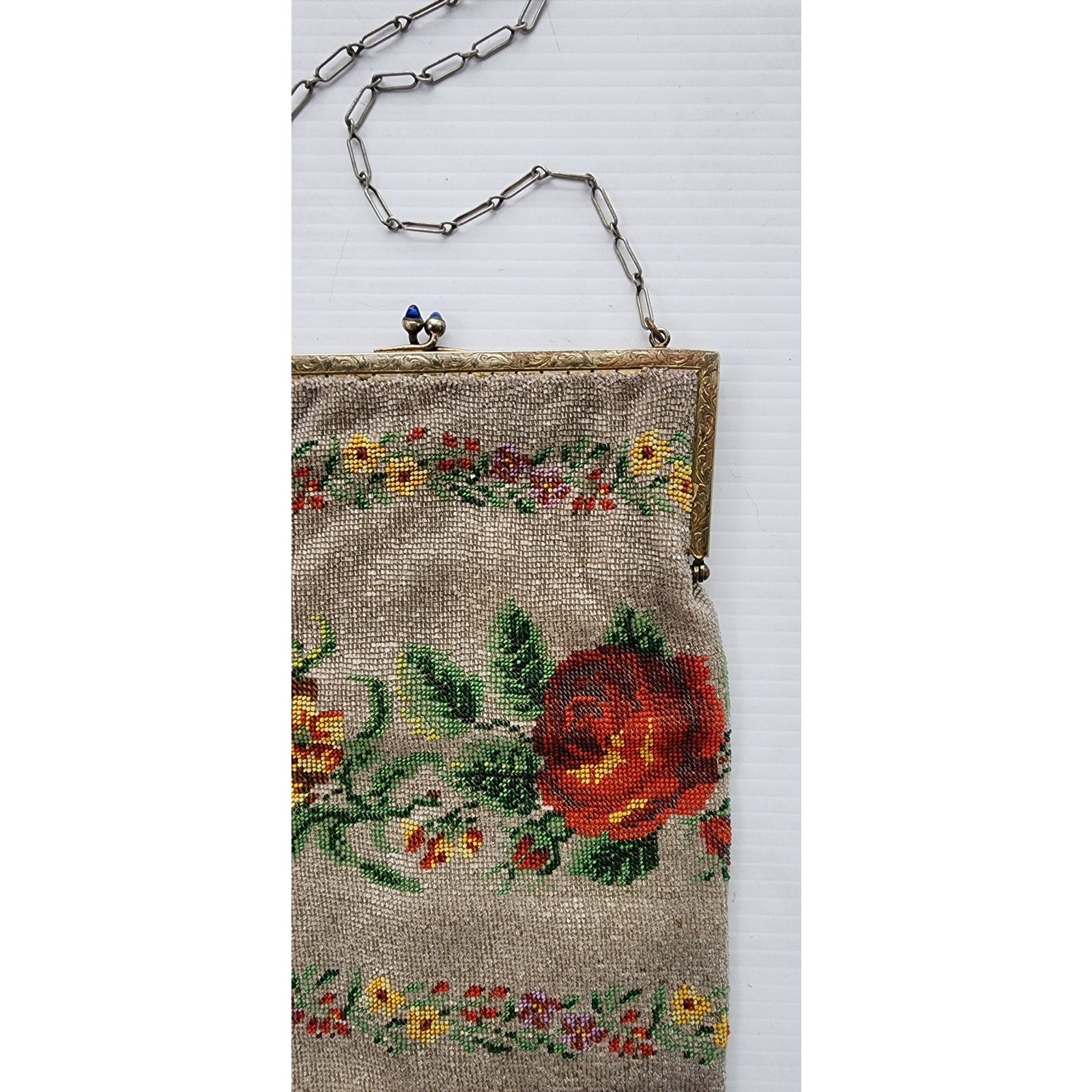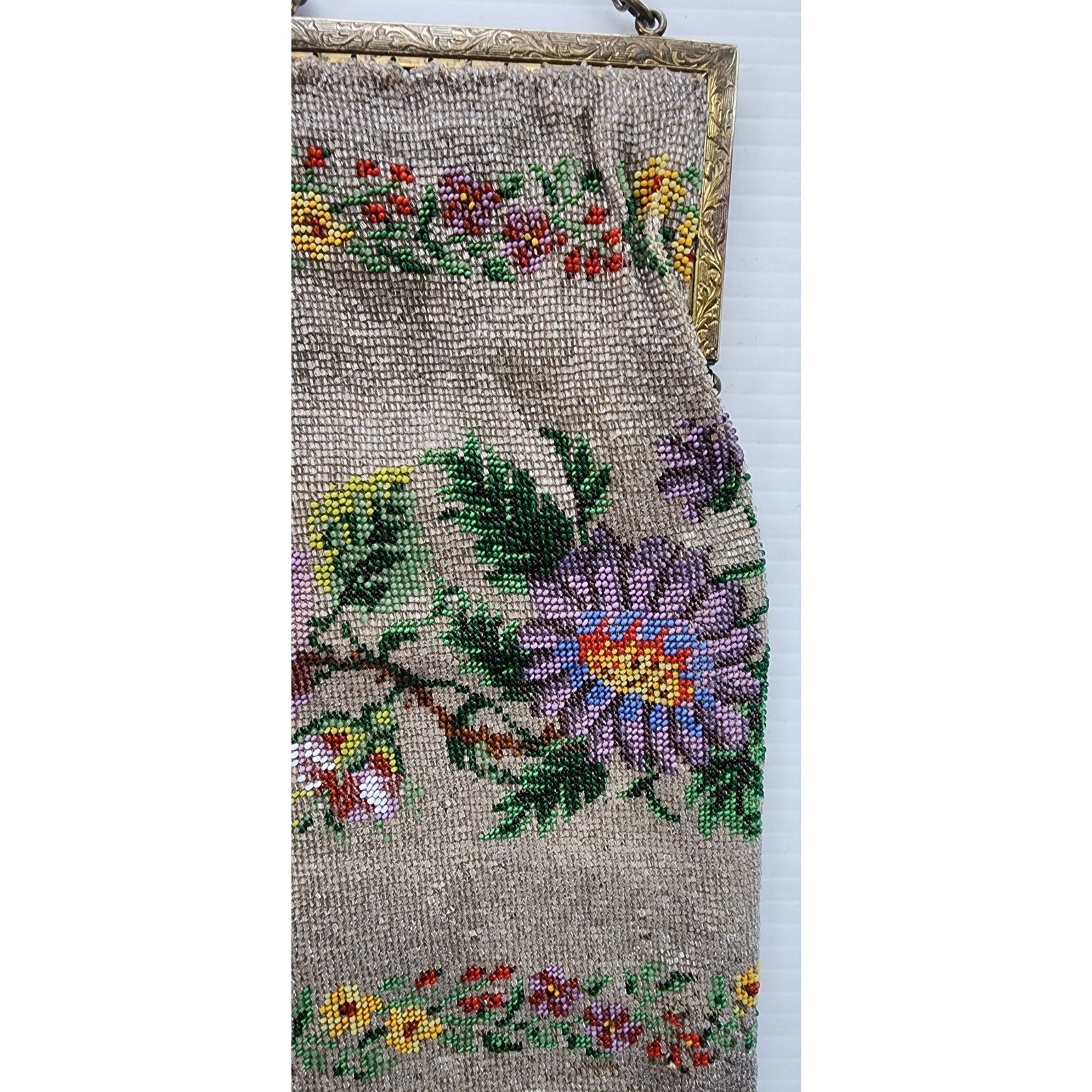 Antique 20s Beaded Bag Floral Pattern Art Nouveau