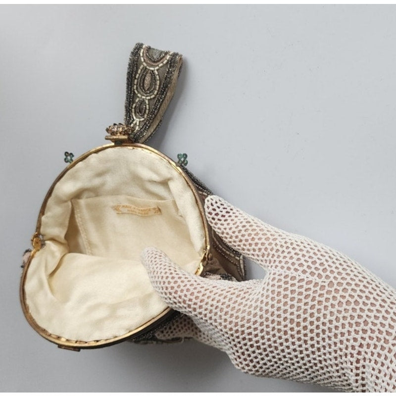 Antique 20s French Beaded Bag Round Art Nouveau Embroidered Purse