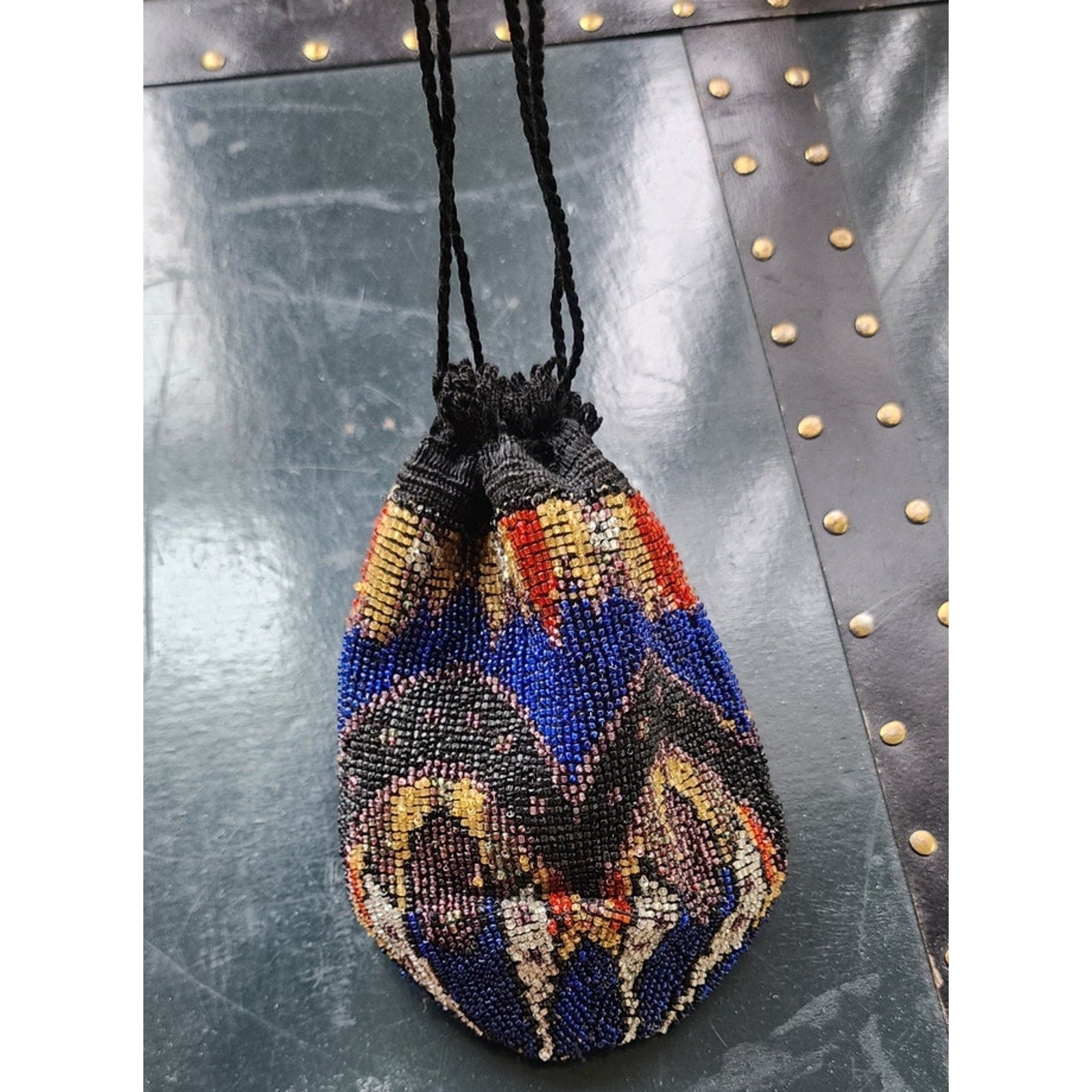 Antique Beaded Bag Vintage Art Deco Purse Drawstring 1920s Reticule