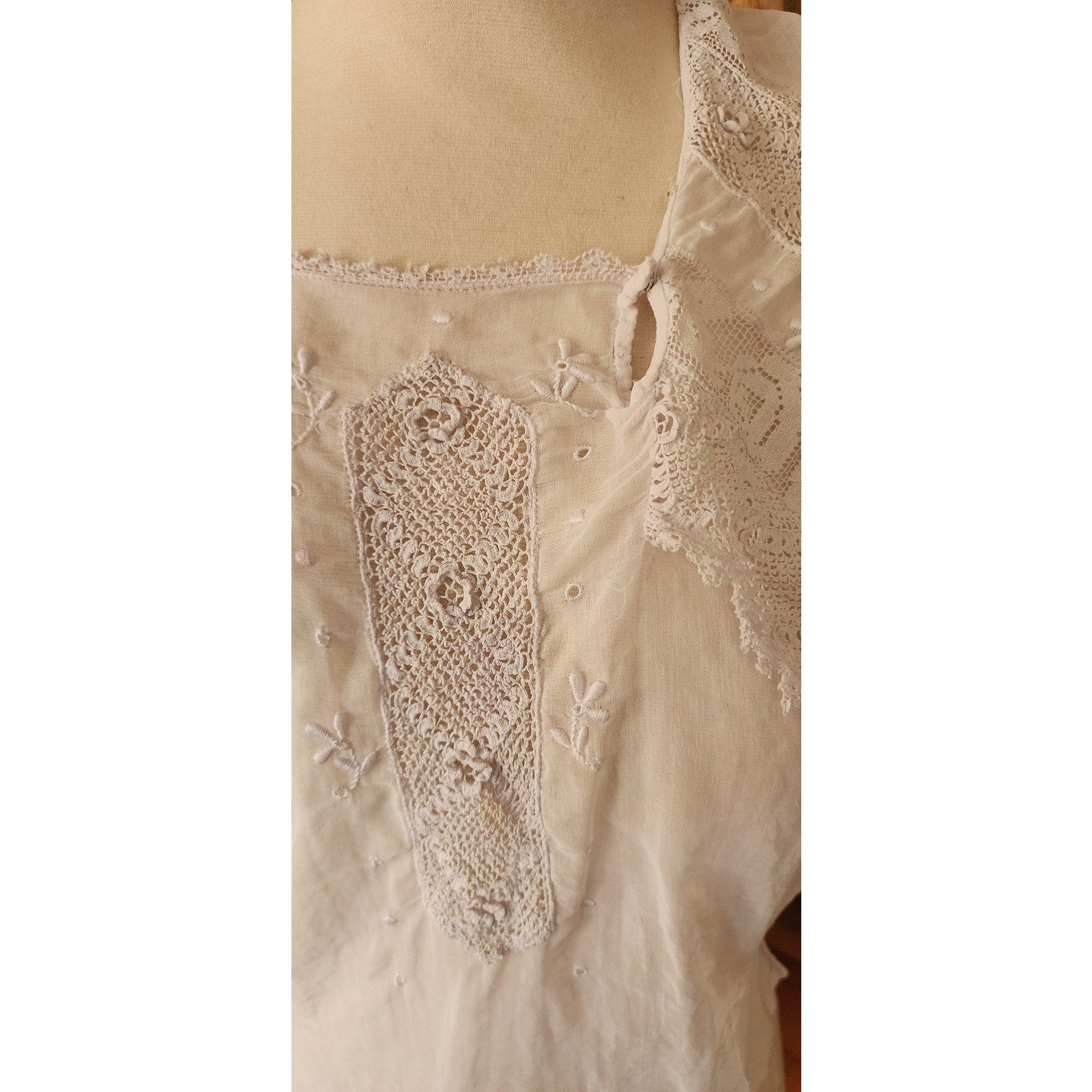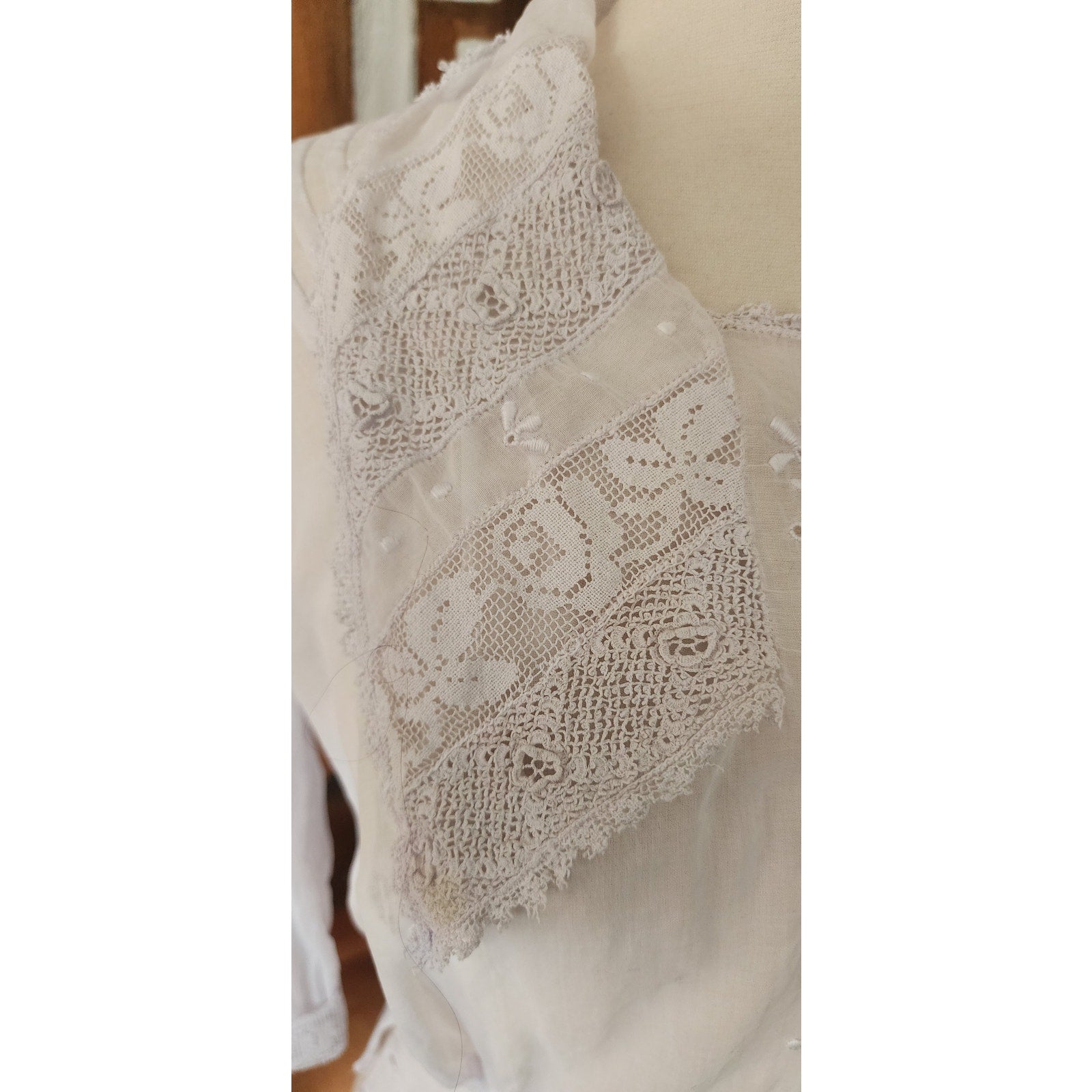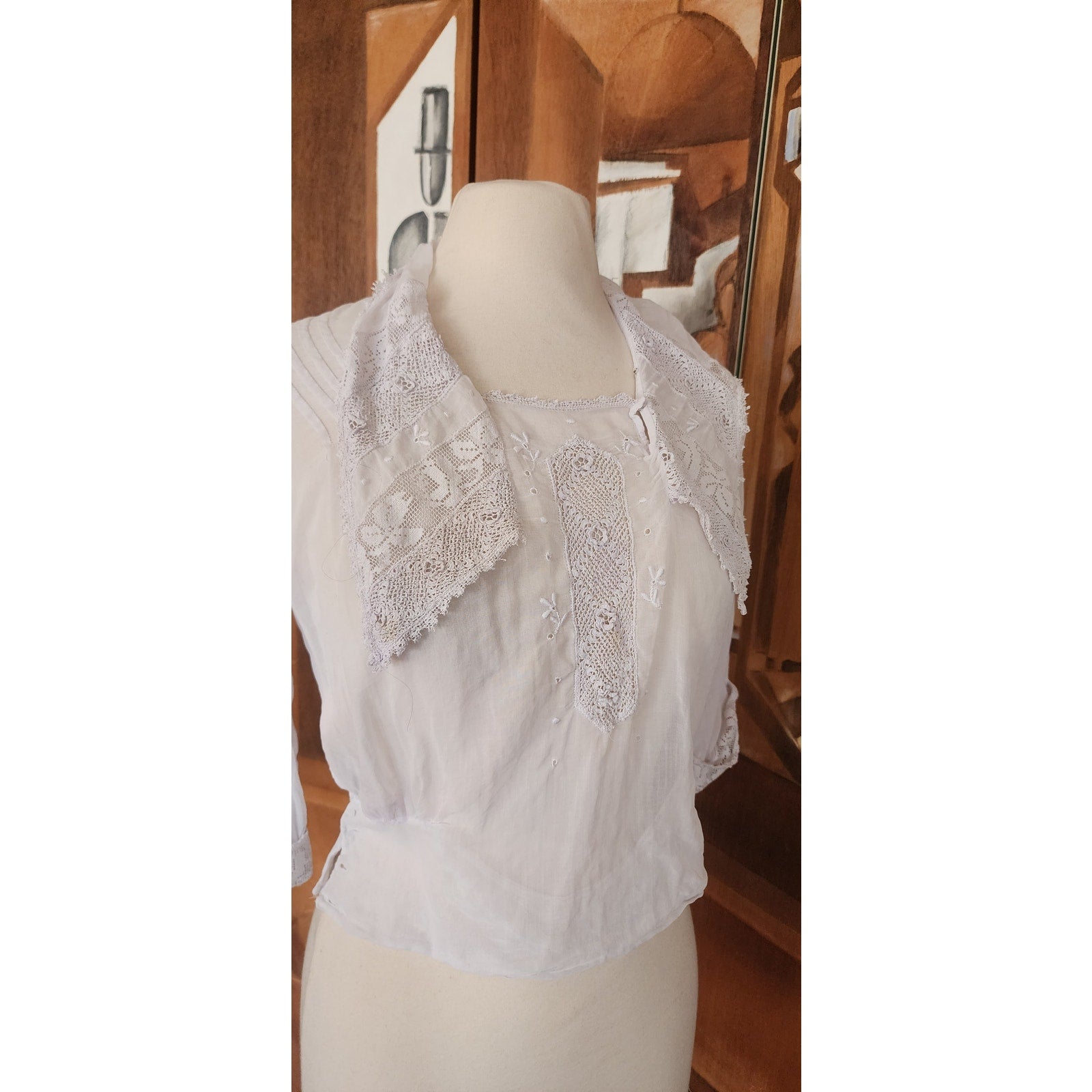 Antique Edwardian Blouse White Cotton Lace Embroidery Sailor Collar / S