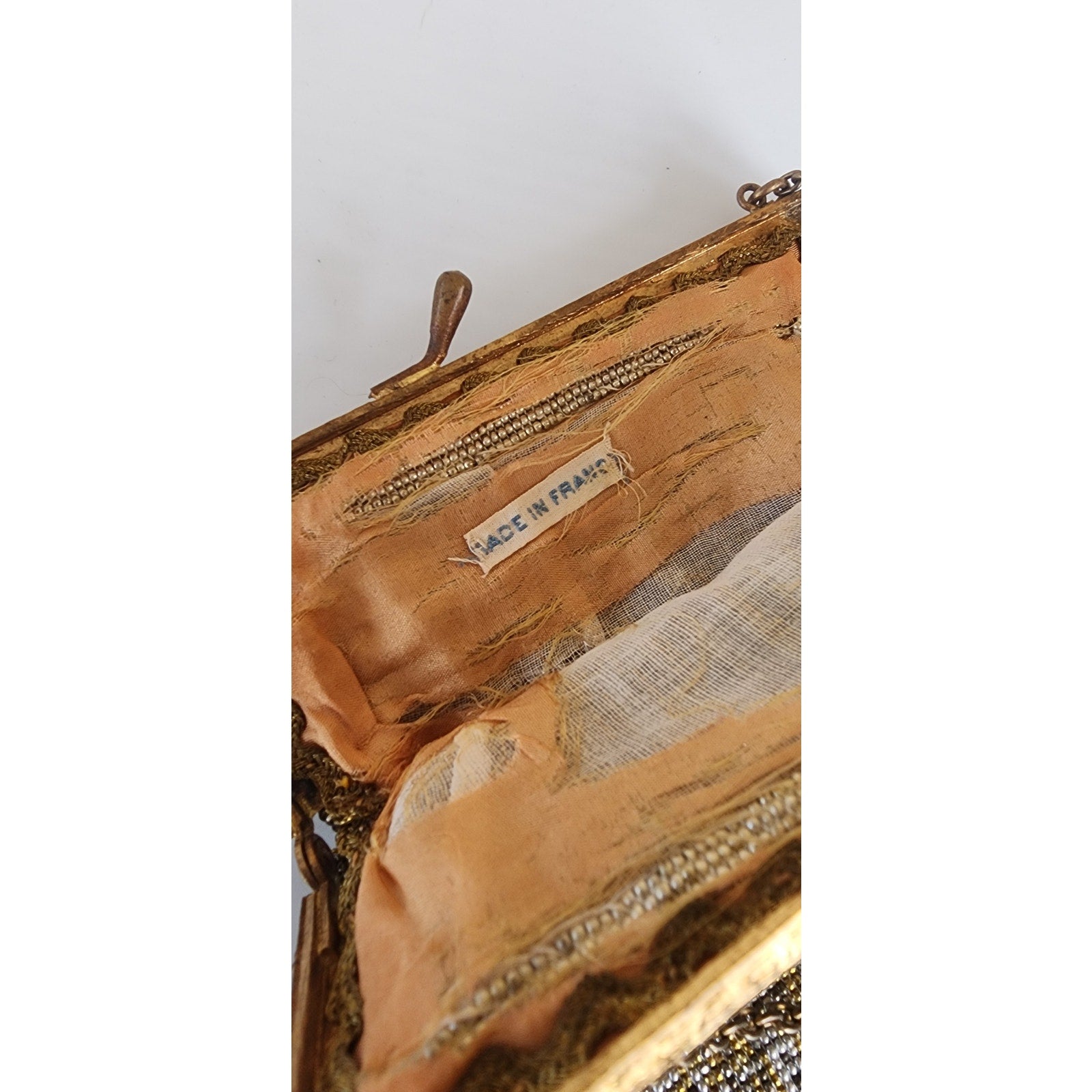 Antique Evening Bag Gold Microbeading Fringe Art Nouveau France