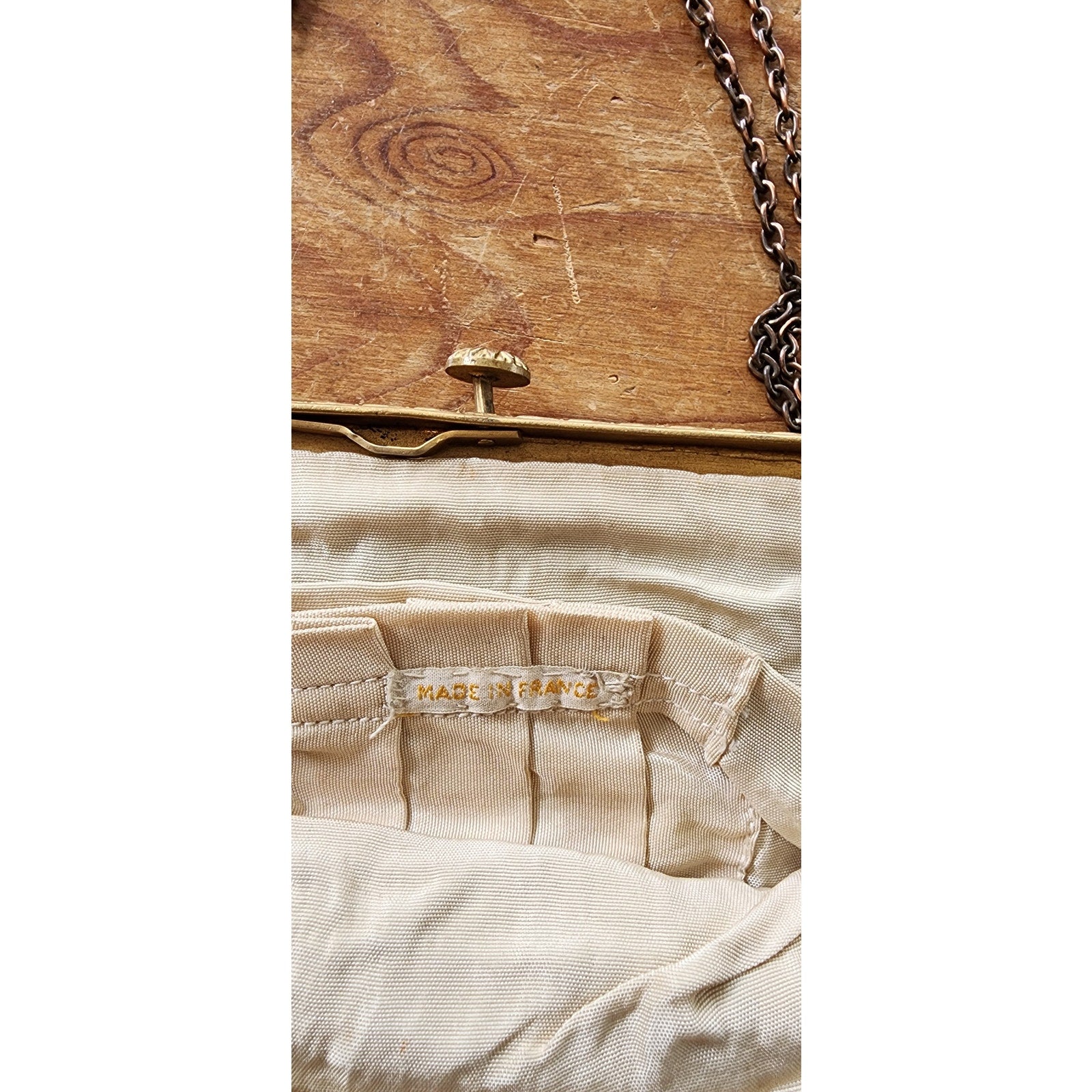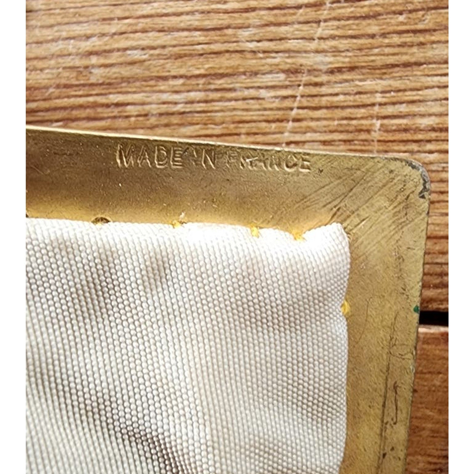Label: Made in France etched into the interior of the gold toned frame.