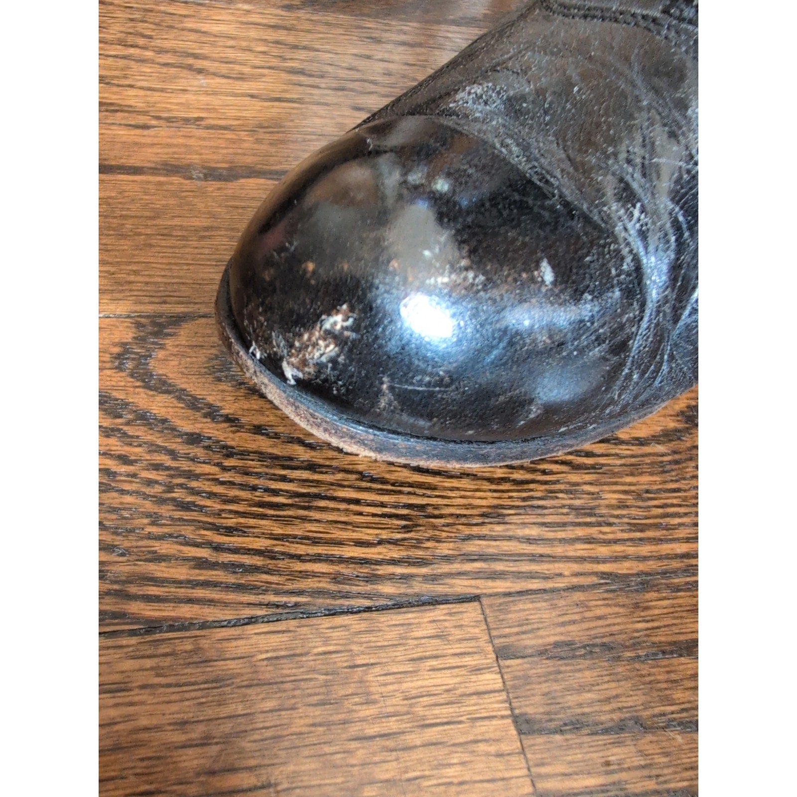 Classic granny boots from the early 1900s with black laces, semi rounded toe and a chunky, low heel.