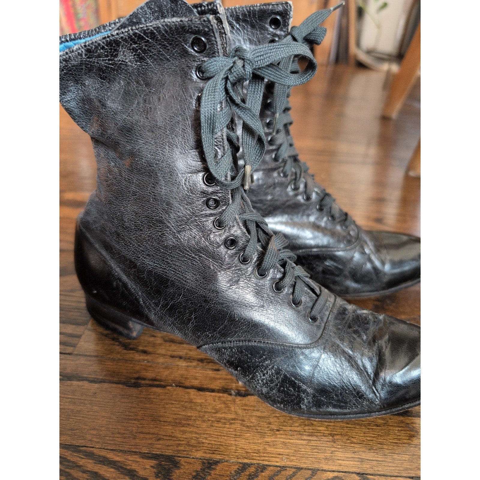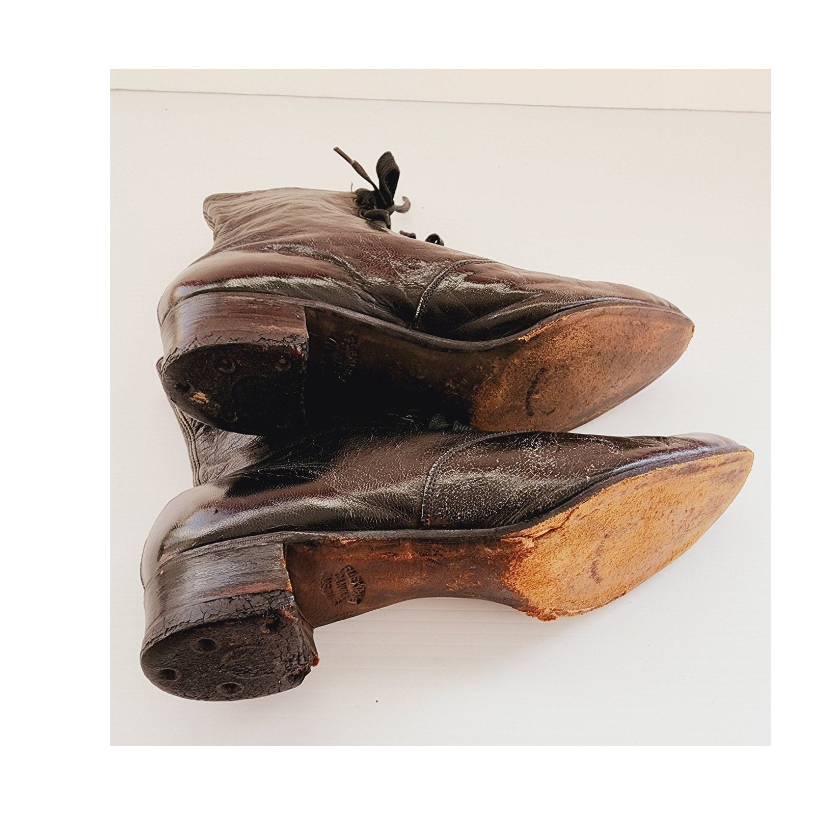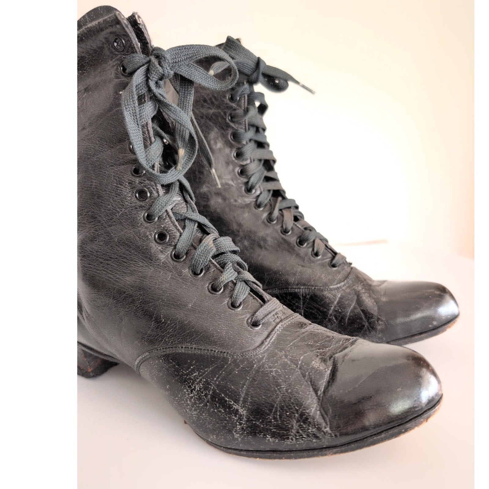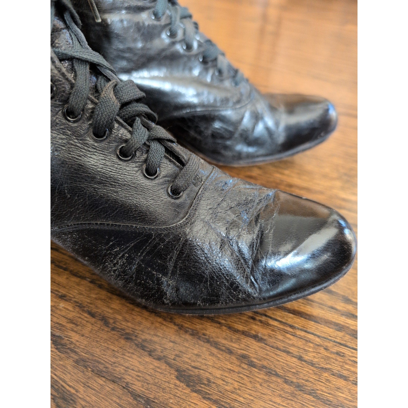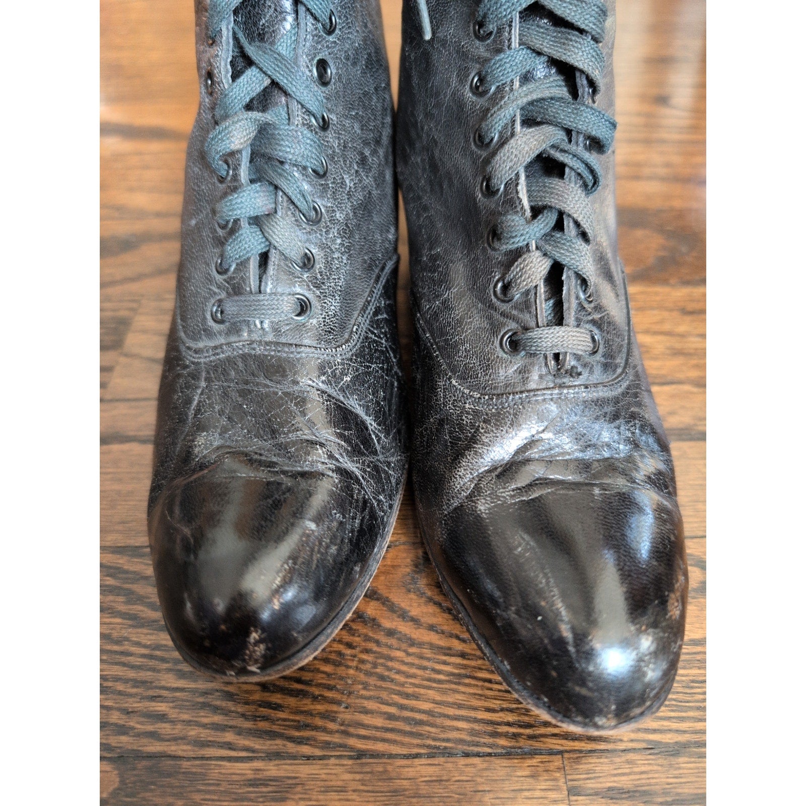 Antique Lace Up Ankle Boots Black Leather Vintage Granny / 6.5