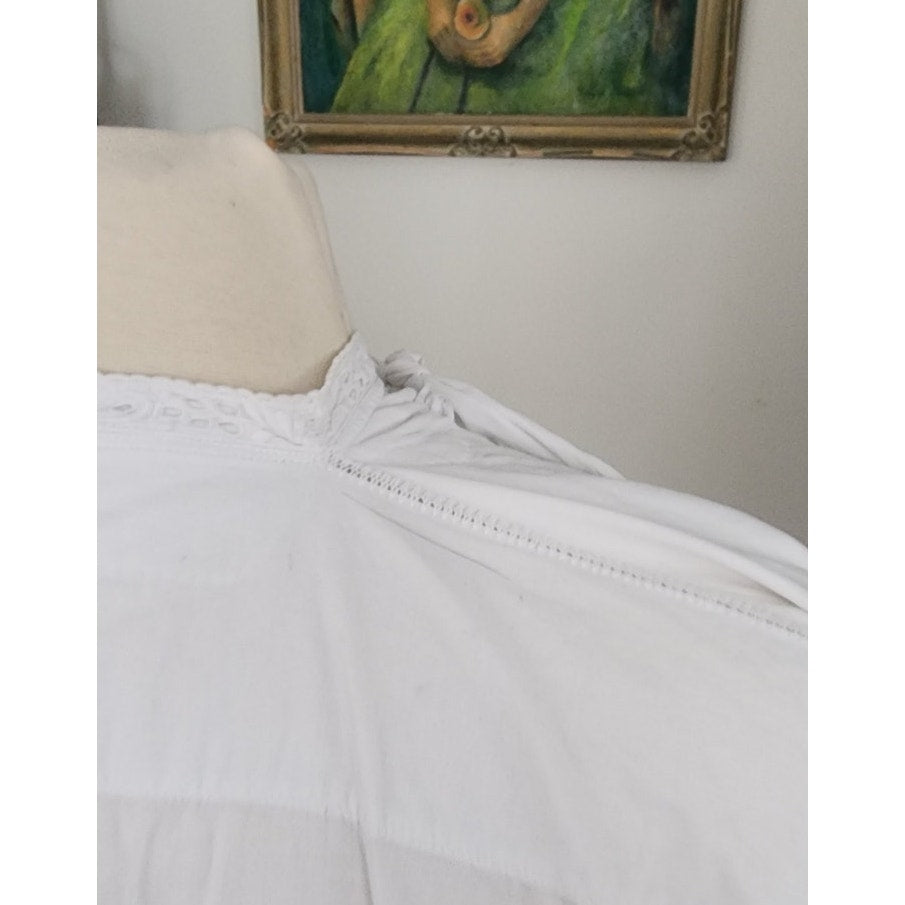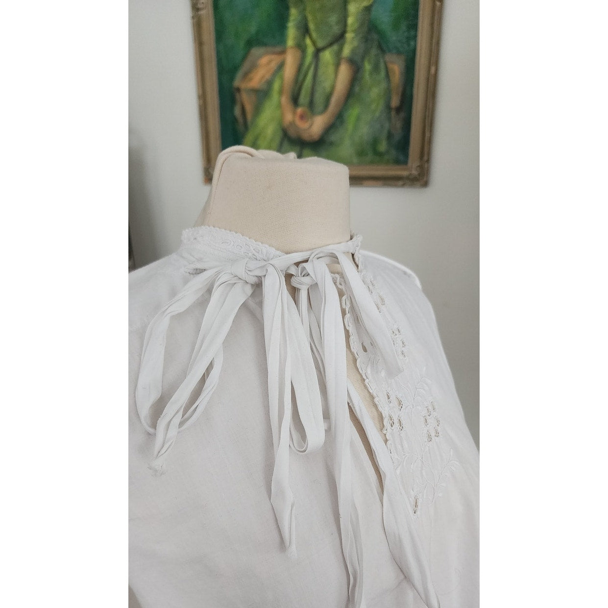 Antique Poet's Blouse / White Cotton Tunic Shirt w/ Embroidered Crochet Lace Sash Tie Neck