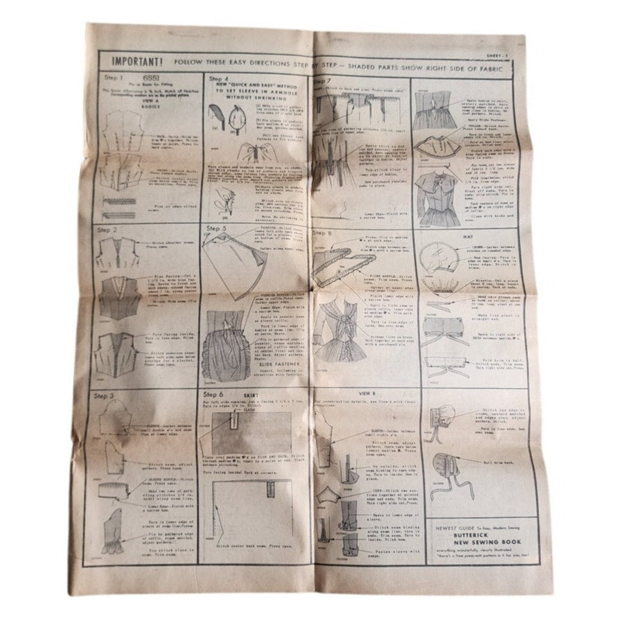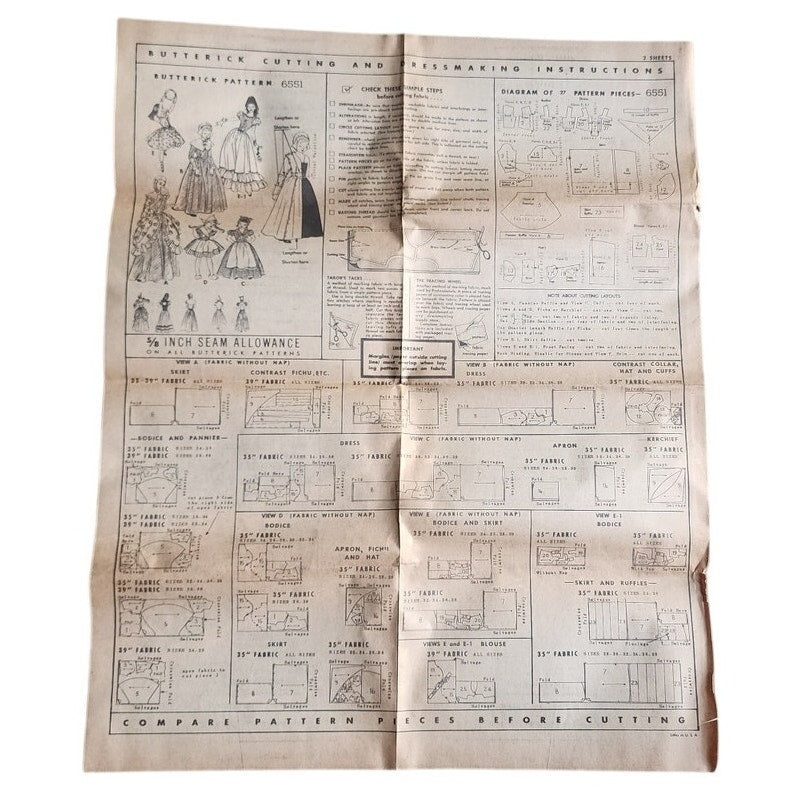 Butterick 6651 Vintage Sewing Pattern 1950s ORIGINAL Halloween Costumes Puritan Colonial Dutch Spanish