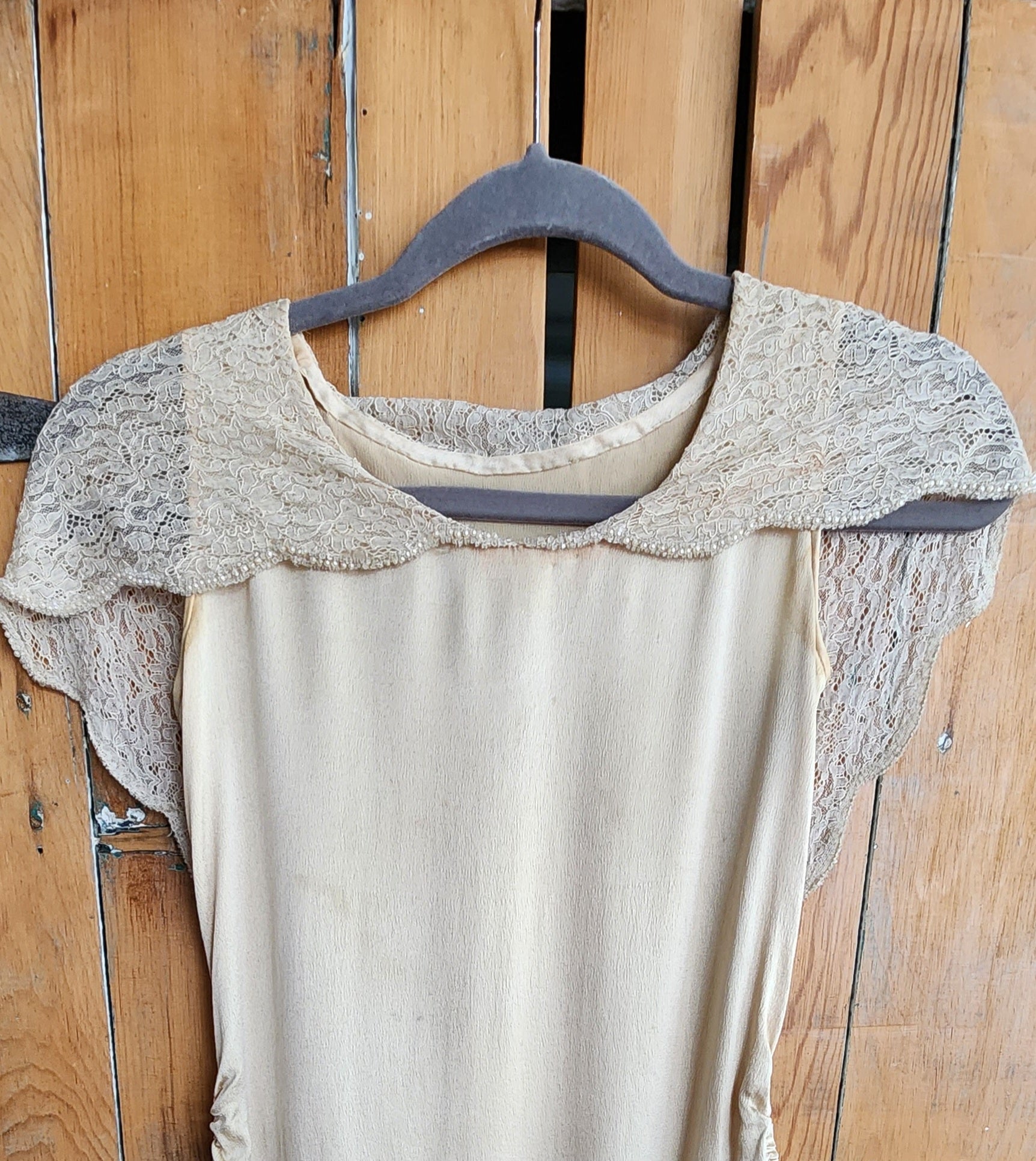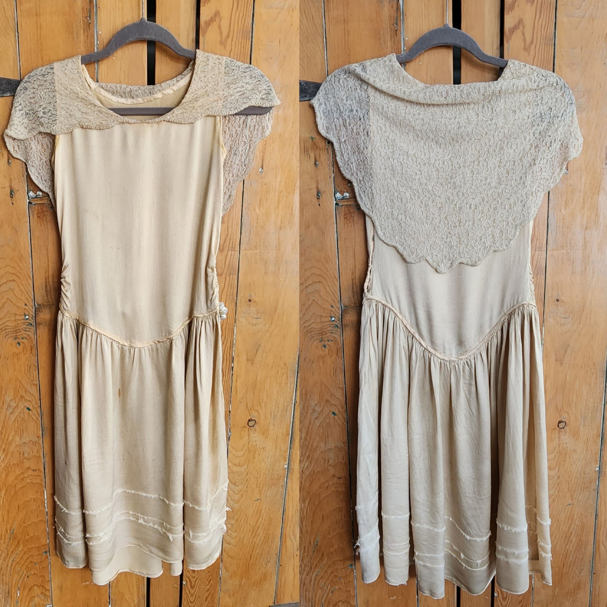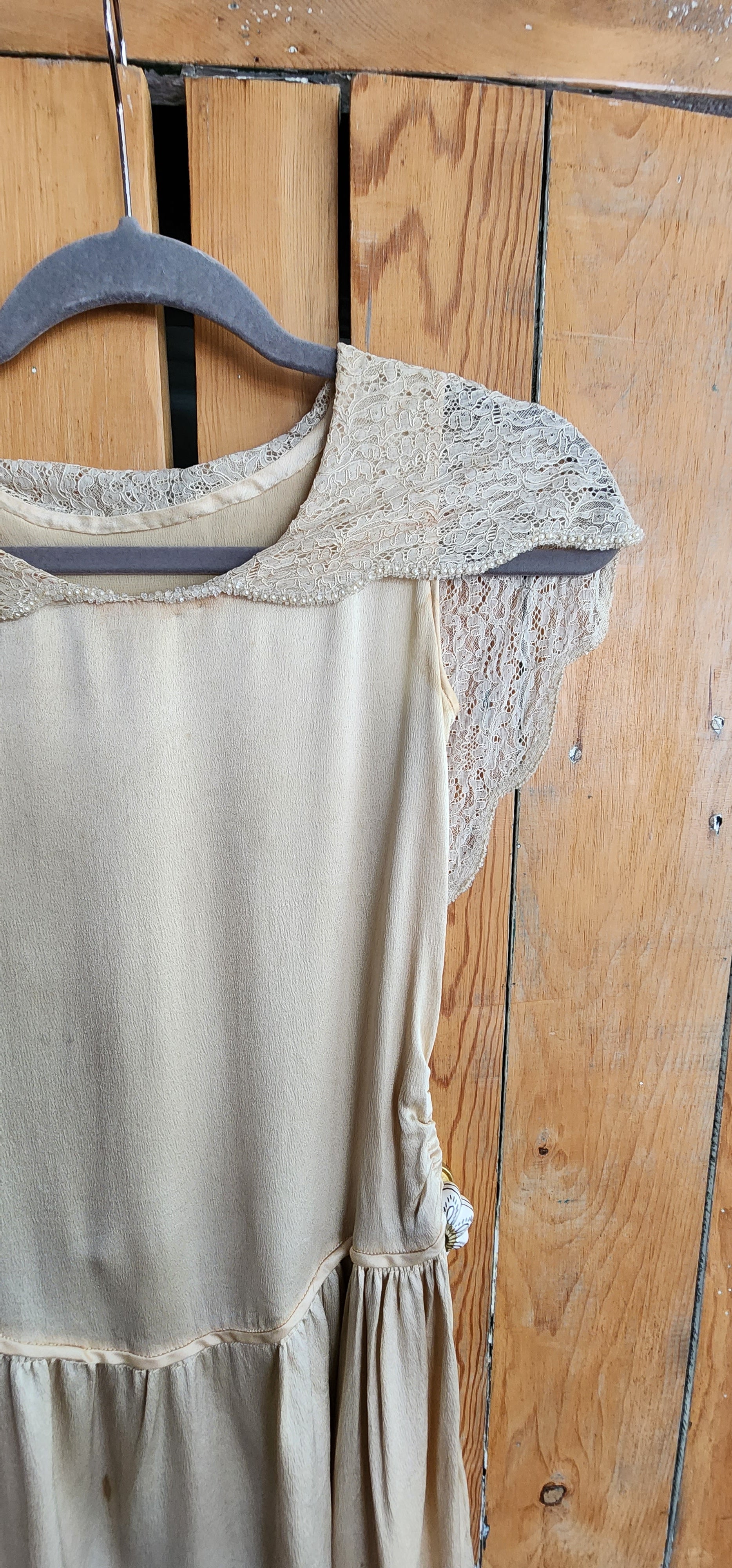 20s Cream Satin & Lace Dress AS IS Junior Size / XS