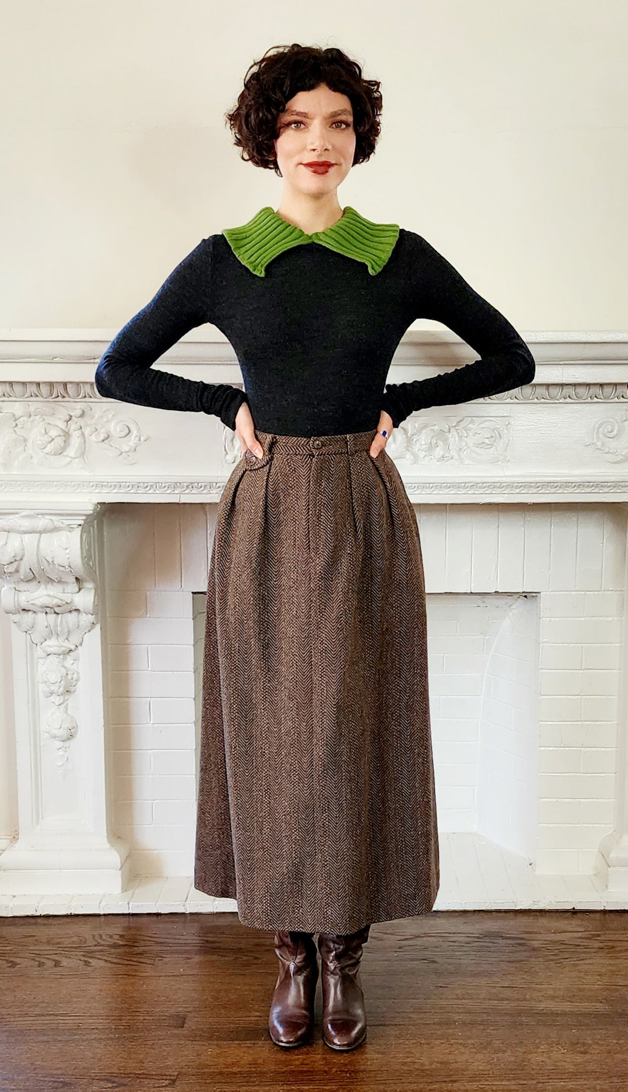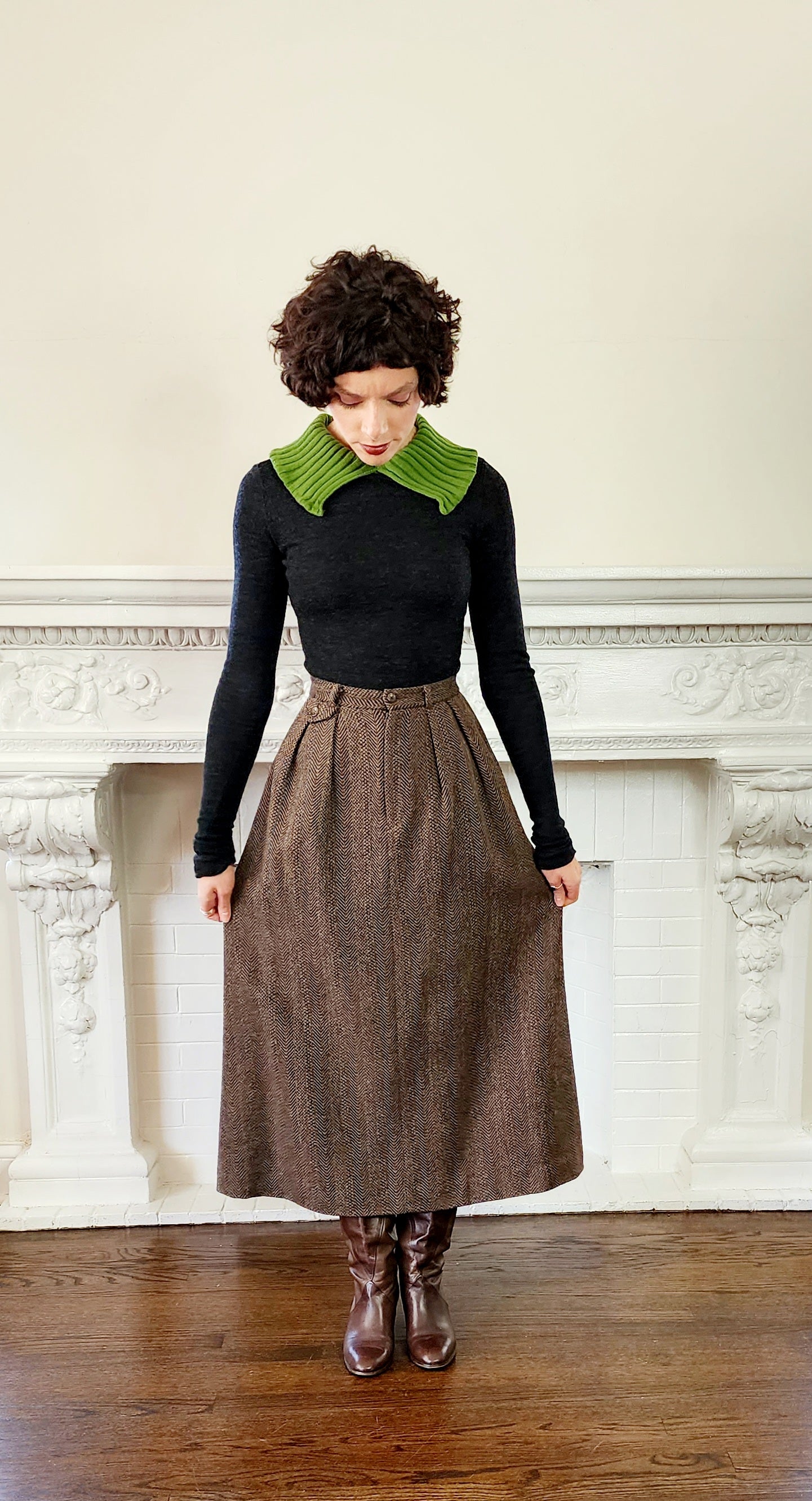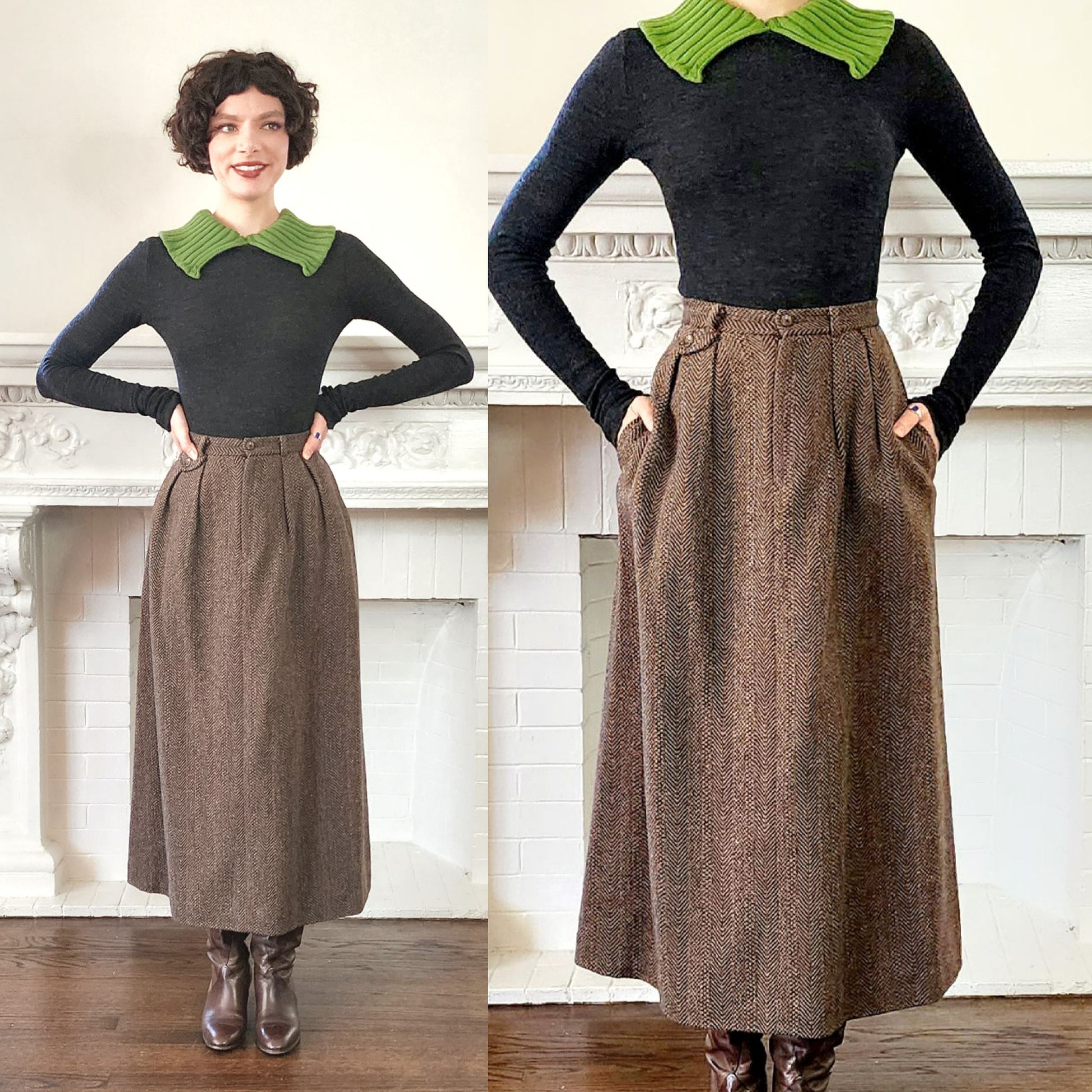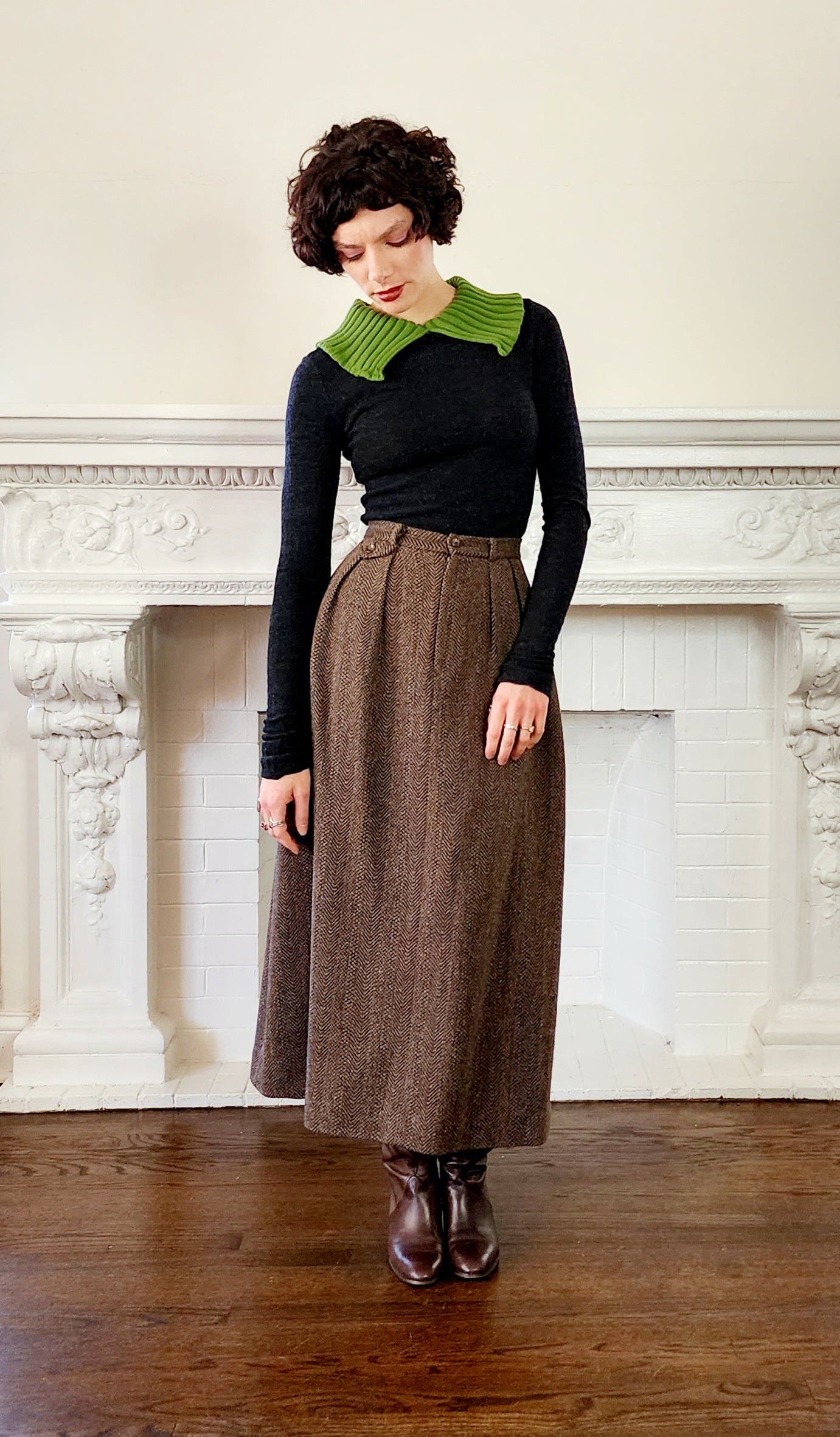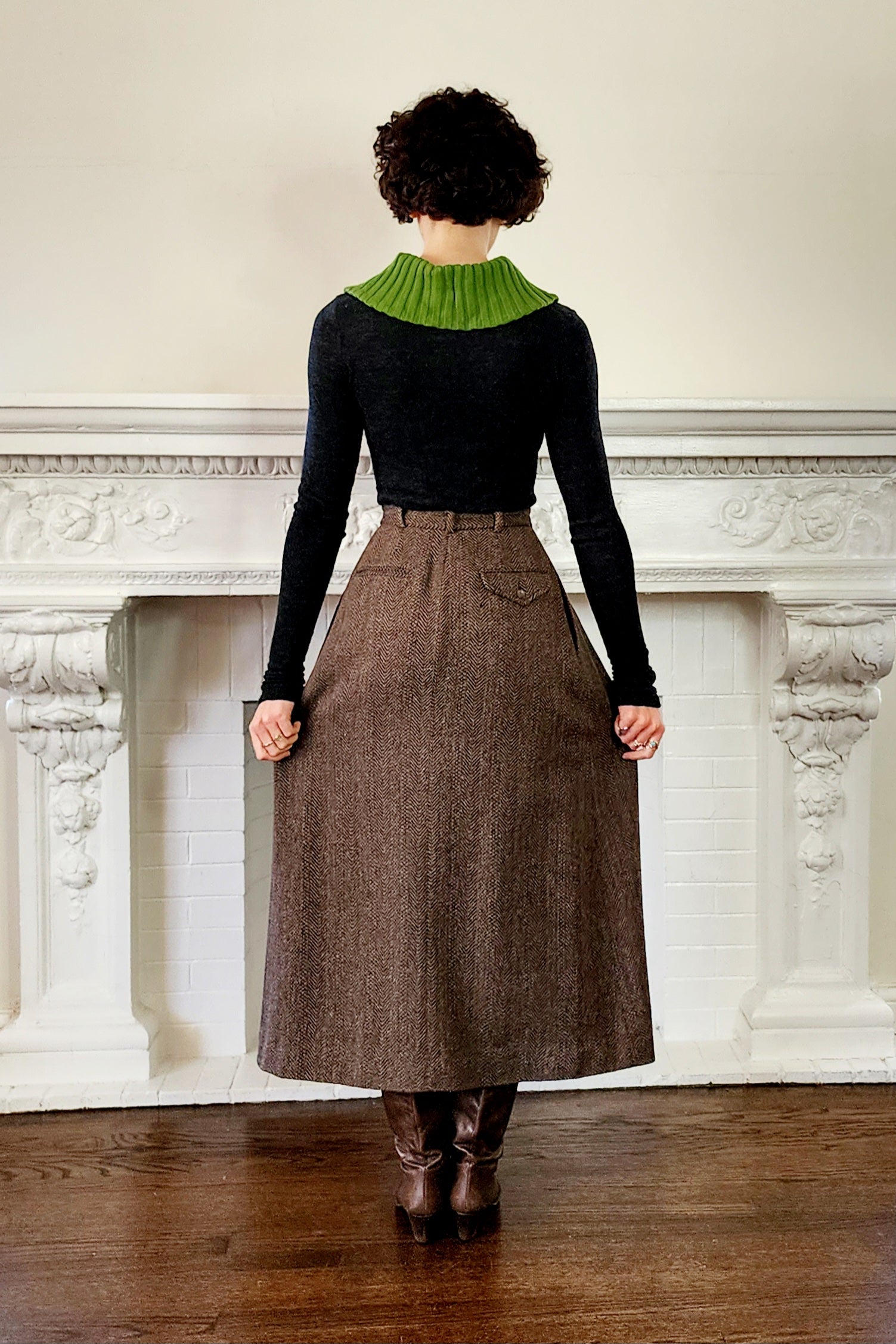 70s Ralph Lauren Wool Tweed Long Skirt in Brown, Small