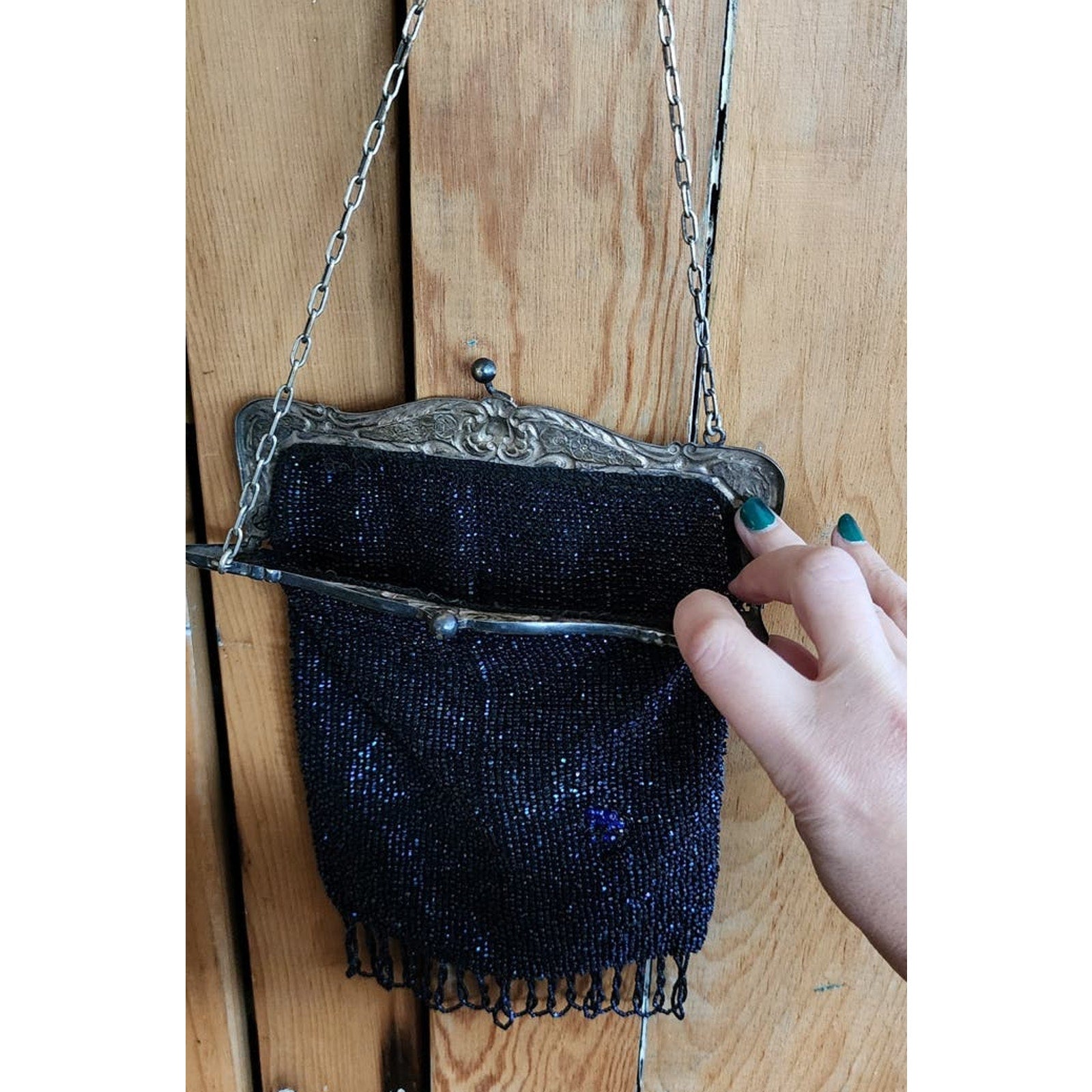 Edwardian Beaded Evening Bag Navy Blue Glass Microbeading