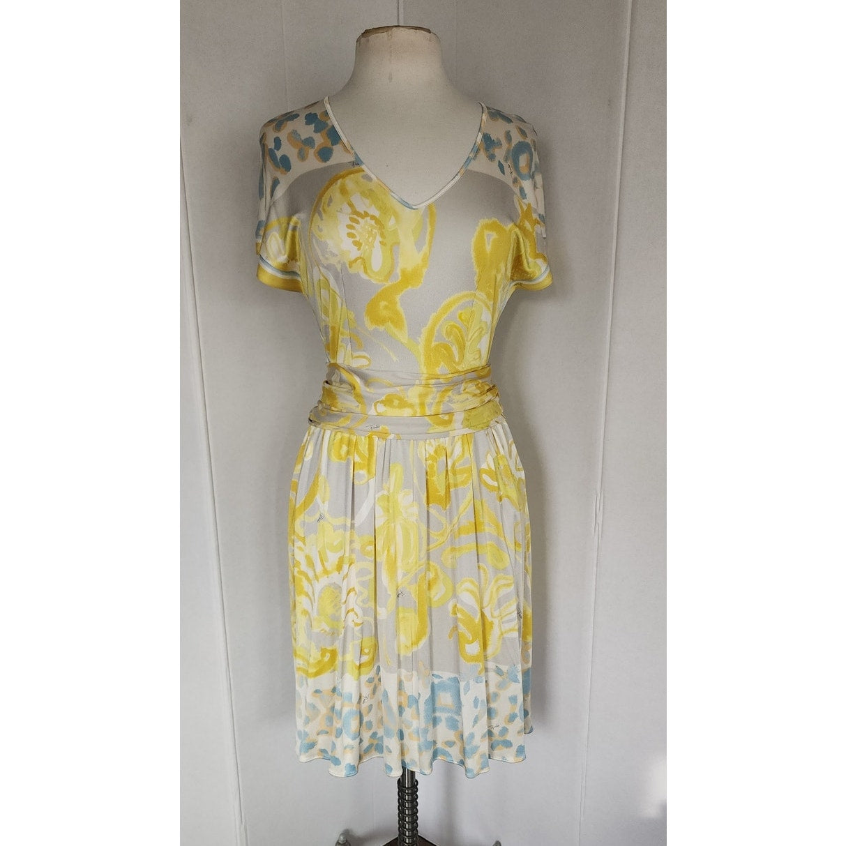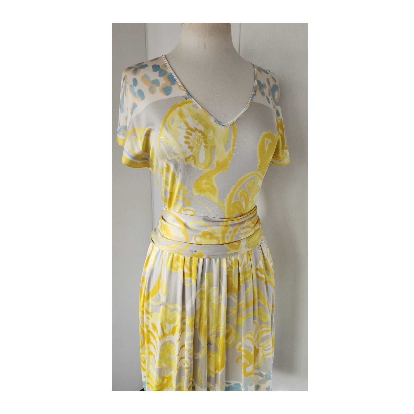 Emilio Pucci Dress Short Sleeved Silkprint Yellow Gray NWT