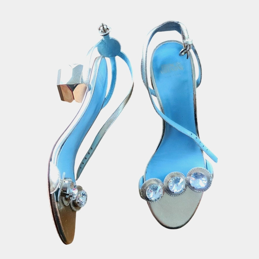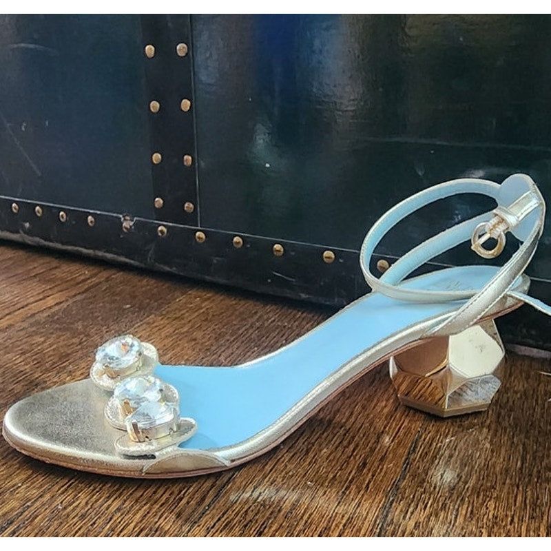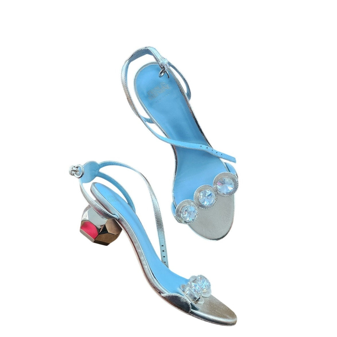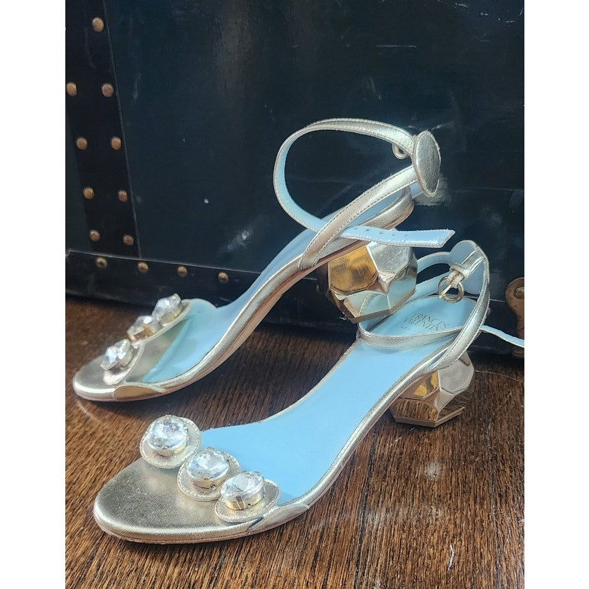 Frances Valentine BEATRIX Sandals Shoes Mary Janes Silver Rhinestone 5 1/2