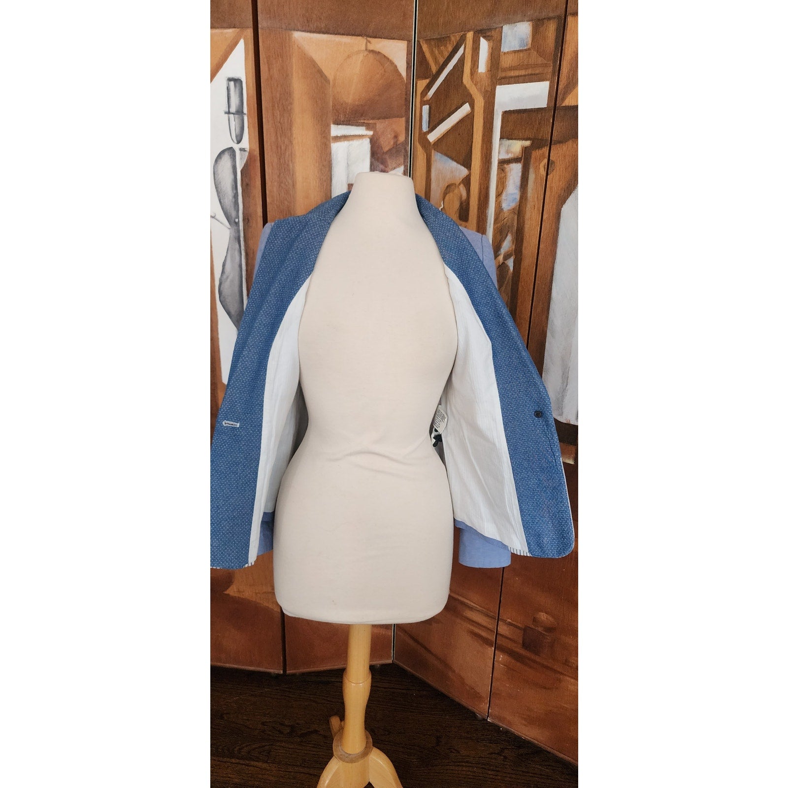 Jack Wills Blue and White Patchwork Denim Blazer, Fitted Single Button