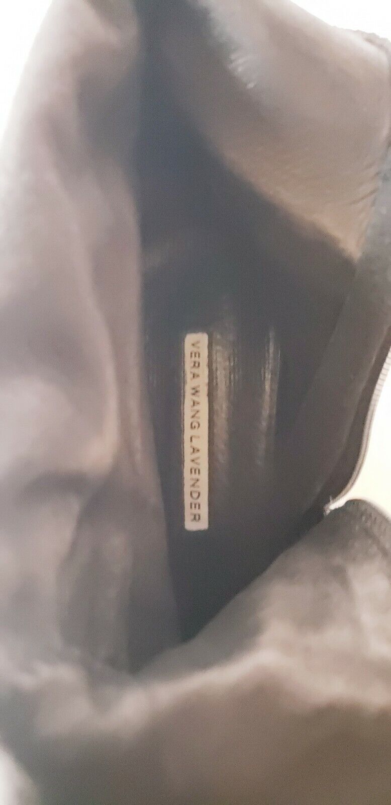 Vera Wang Lavender Black Leather Kippy Boots Buckle Straps Zipper 8 Mid Calf