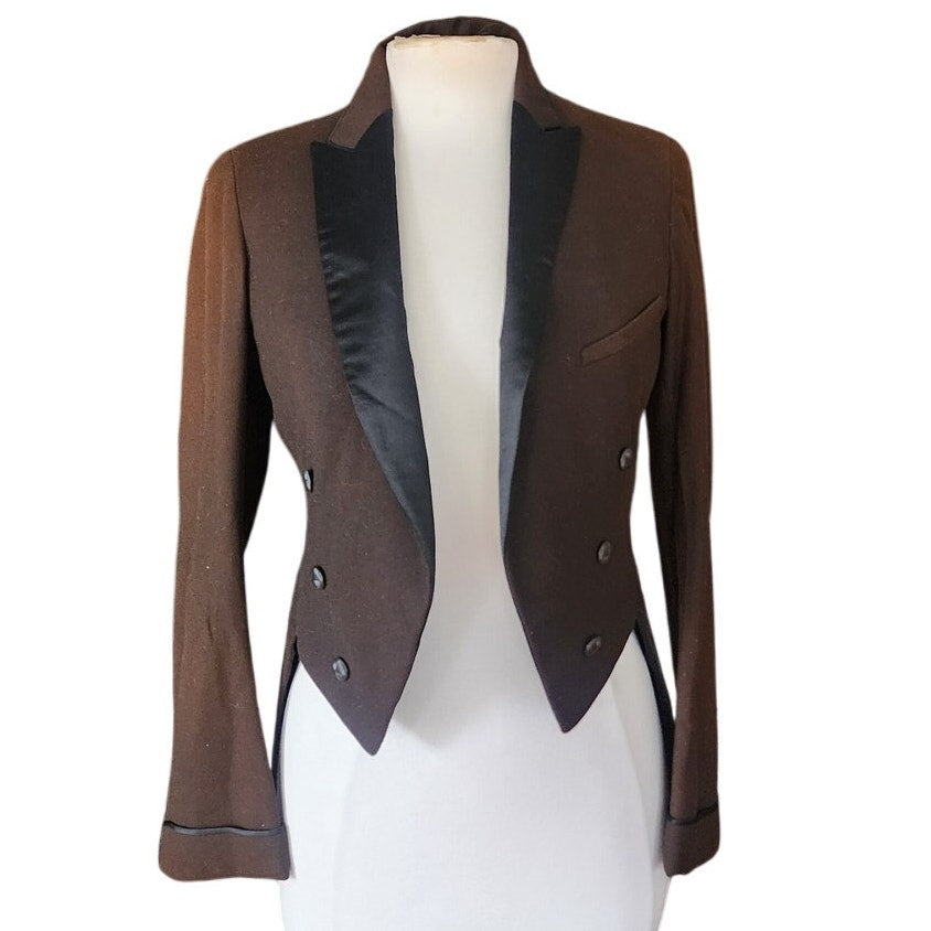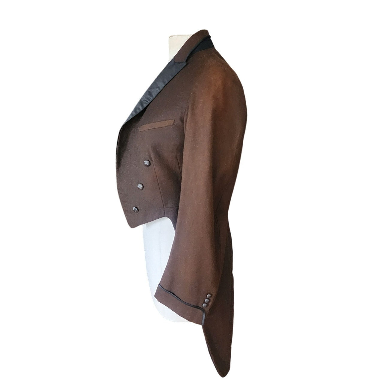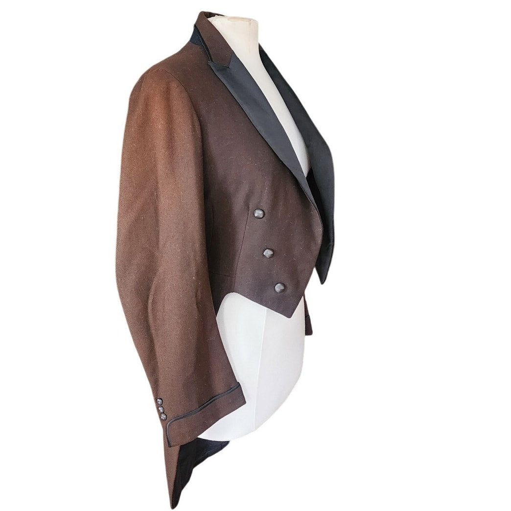 Vintage 1920s Mens Tuxedo Tailcoat Brown Wool Antique Formal Jacket Joseph Horne XS