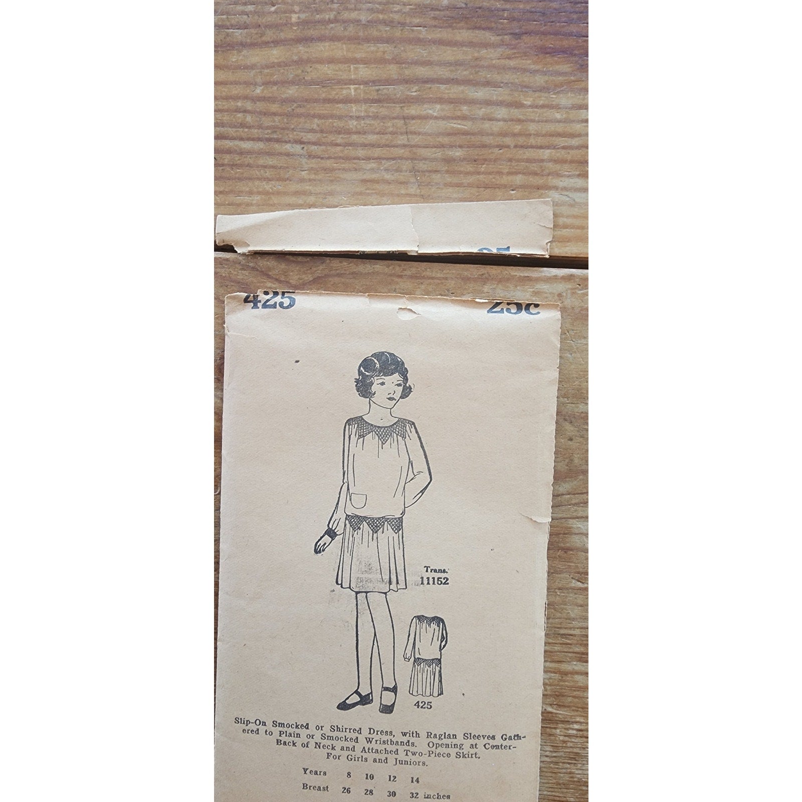 Vintage 1920s Sewing Pattern ORIGINAL: Girls Smocked Shirred Dress Chicquette 425 Chicago Daily News
