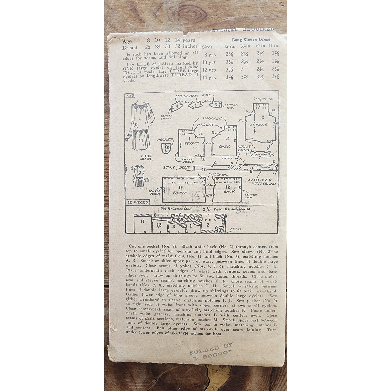 Vintage 20s Sewing Pattern ORIGINAL: Girls Smocked Shirred Dress Chicquette 425