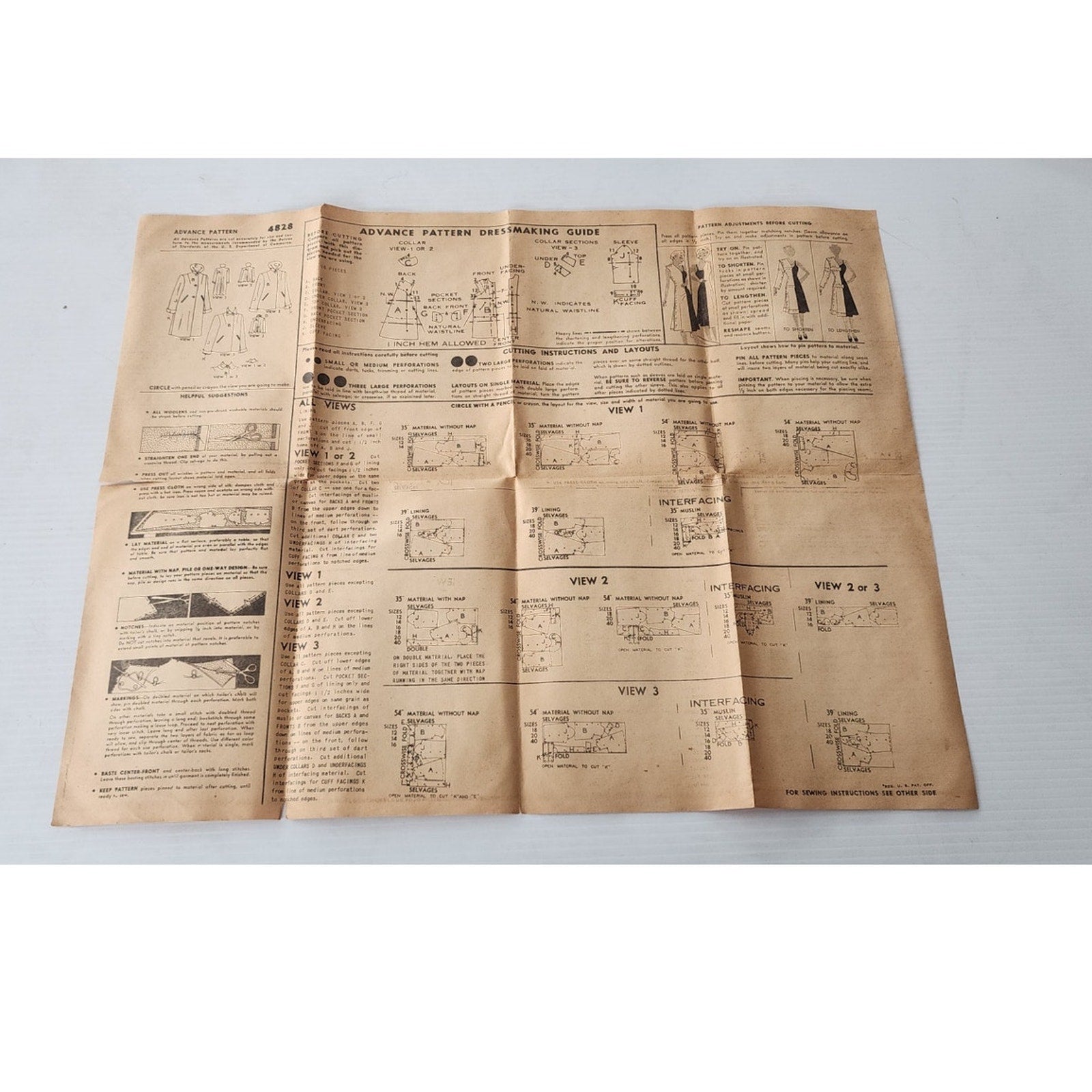 Vintage 40s Sewing Pattern ORIGINAL / Swing Coat & Swing Jacket Advance 4828 Bust34