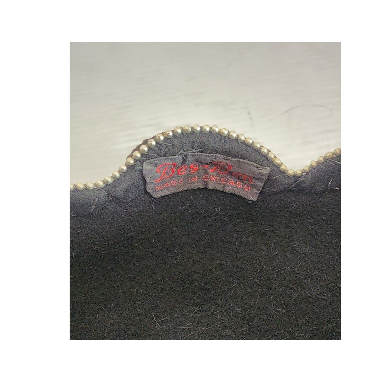Vintage 1950s Bes-Ben Hat Black Wool Gold Feather Motif