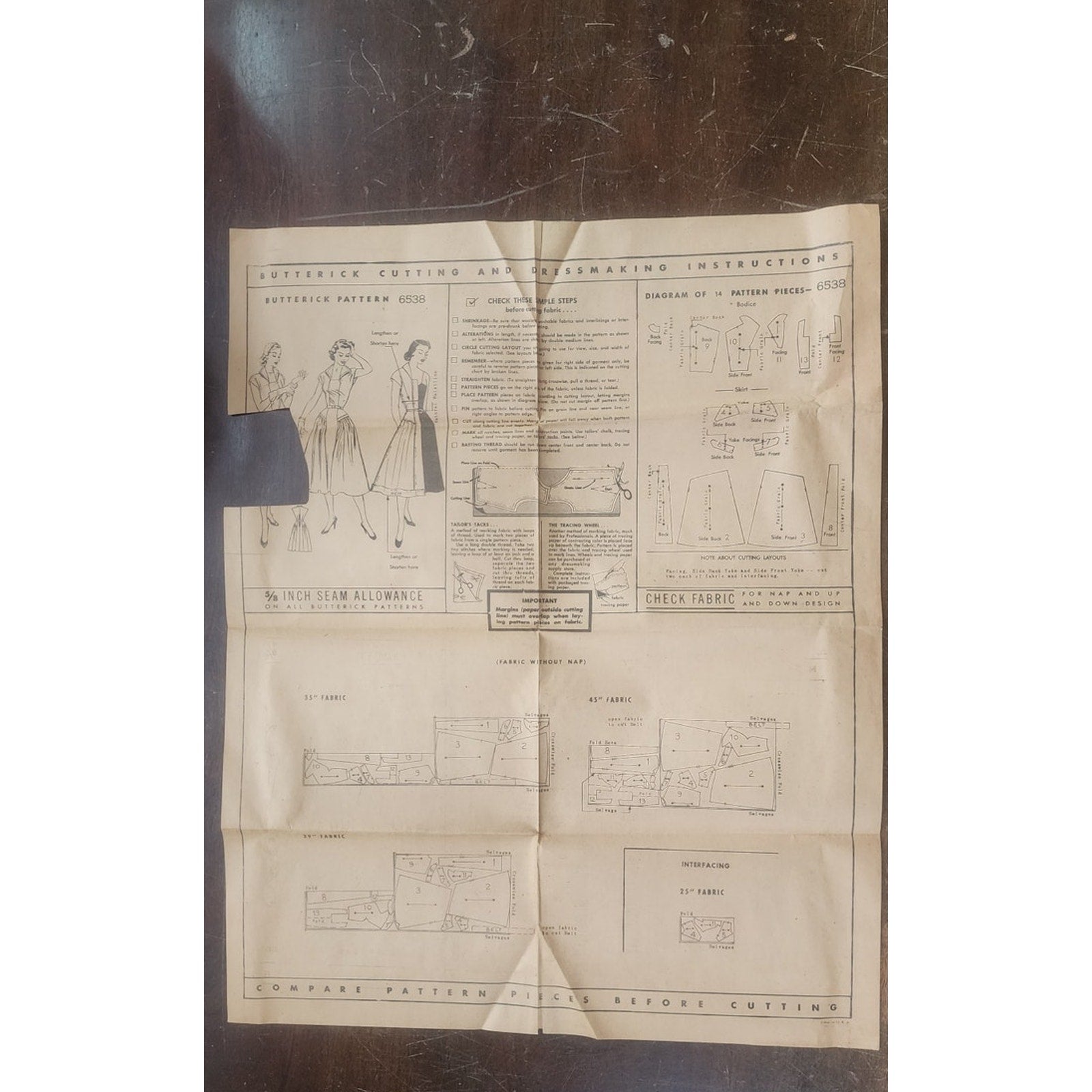 Vintage 50s Dress Sewing Pattern: One Piece Dress Wing Collar Butterick 6538 / Bust 34