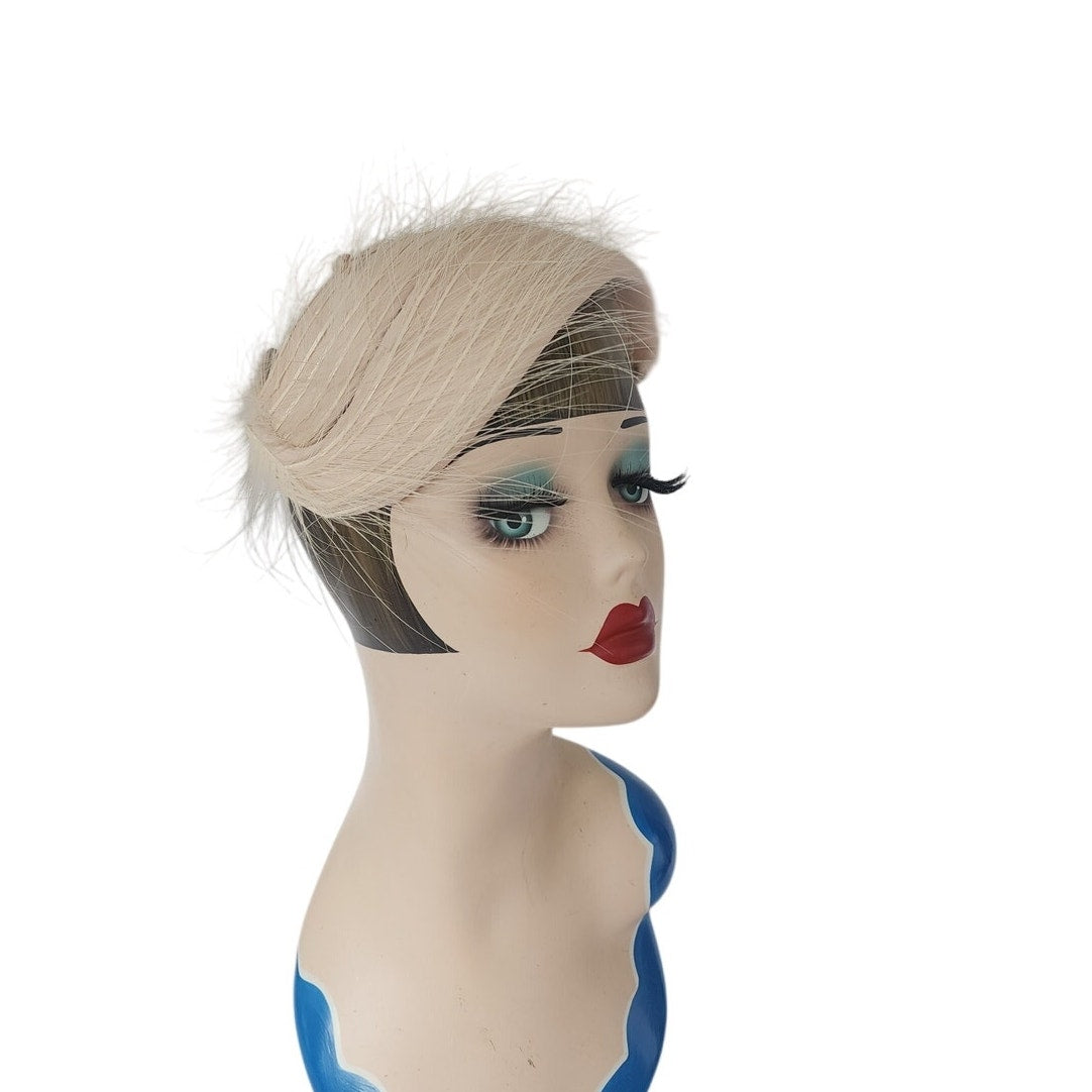 Vintage 1950s Fascinator White Feather Headdress Bridal Headband