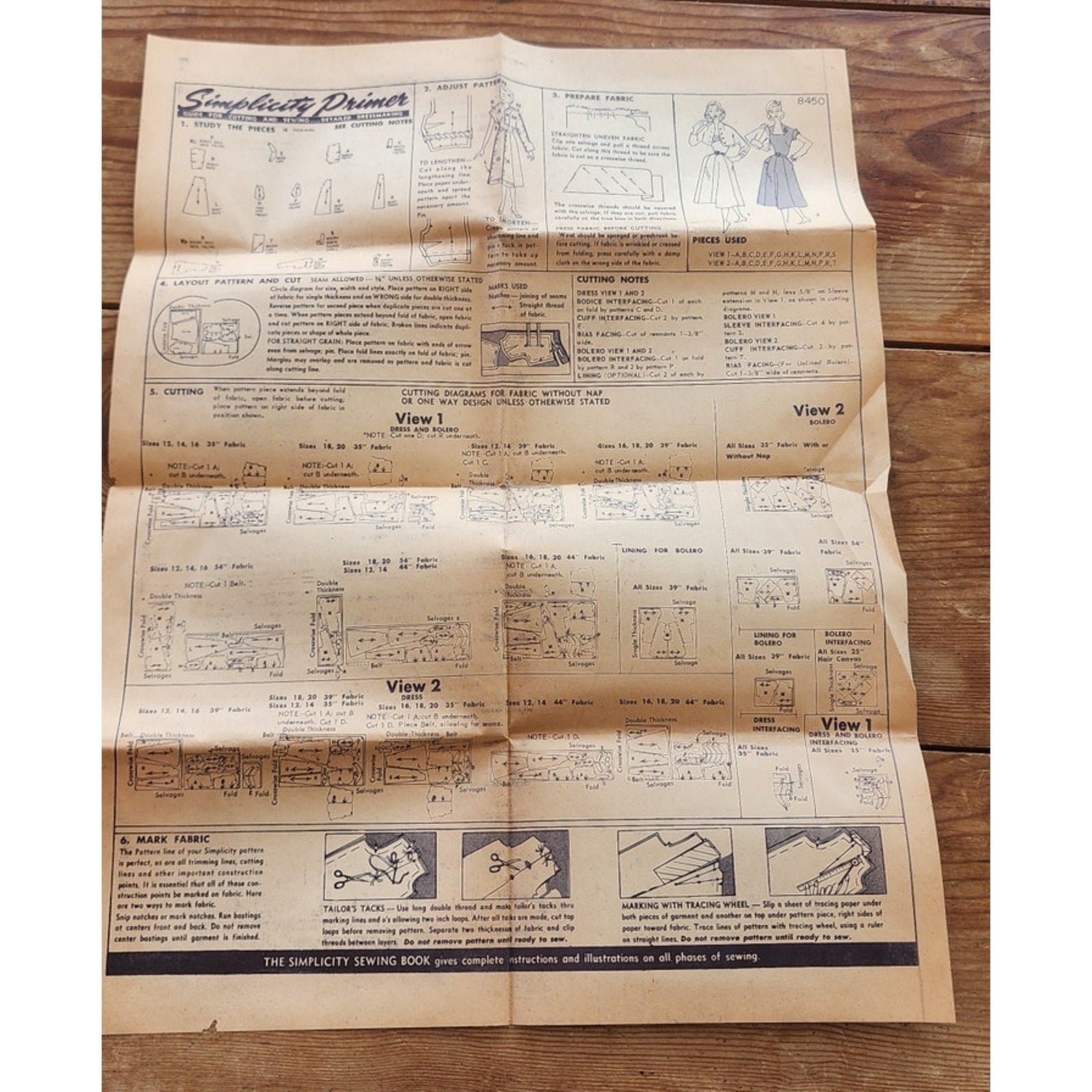 Vintage 50s Sewing Pattern ORIGINAL: Dress + Bolero Jacket Simplicity 8450 Bust 34