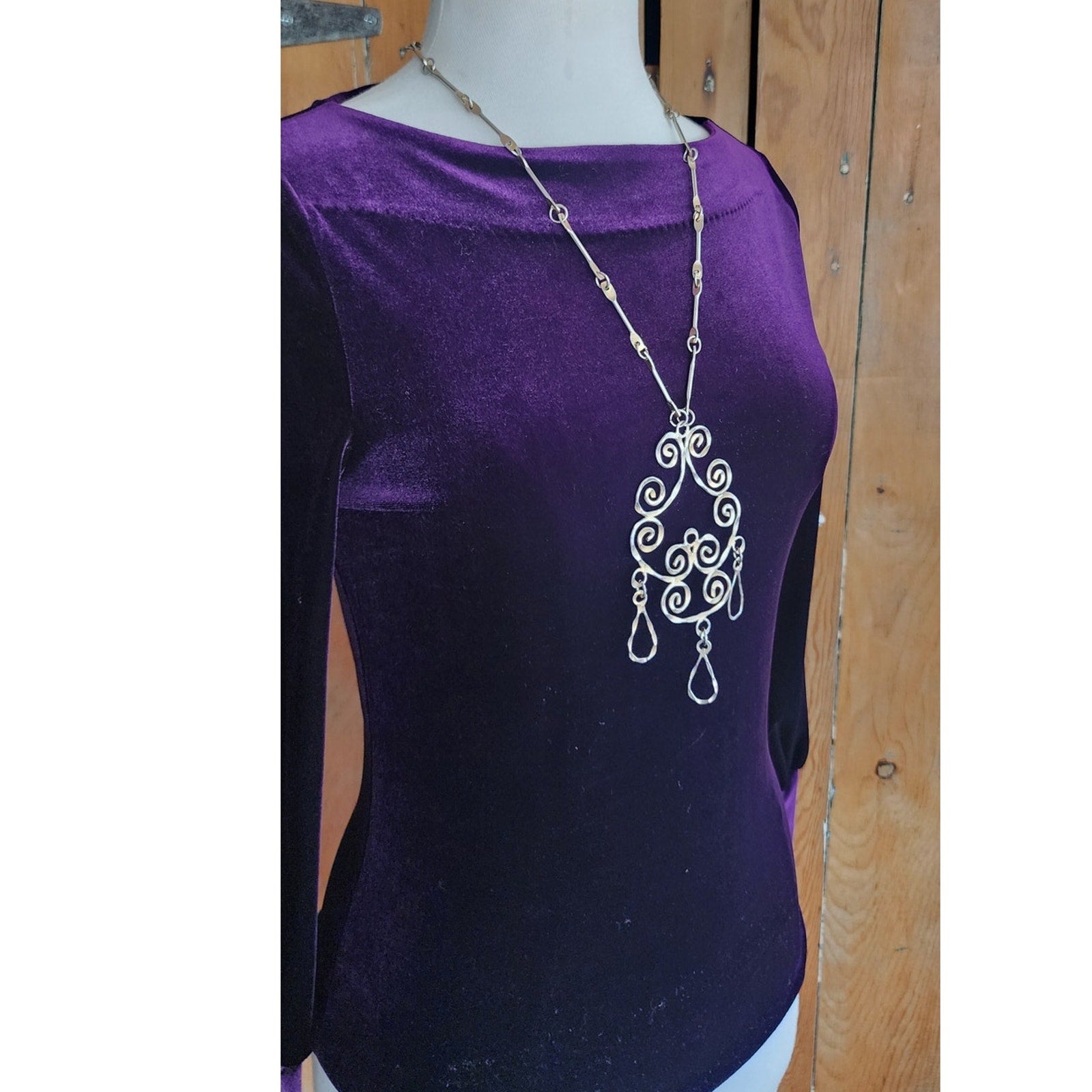 Vintage 60s Boho Pendant Necklace Spiral Scrolls