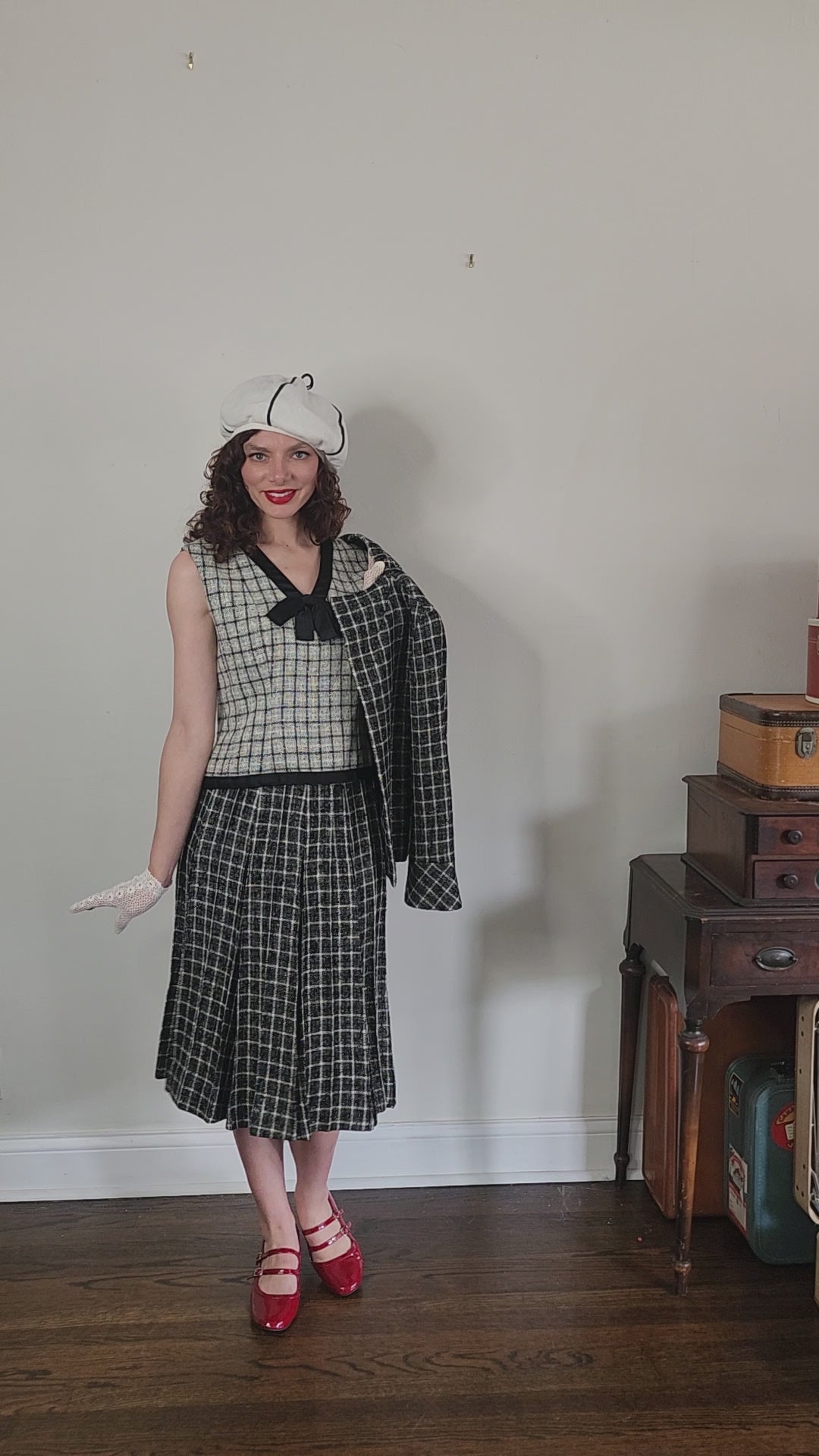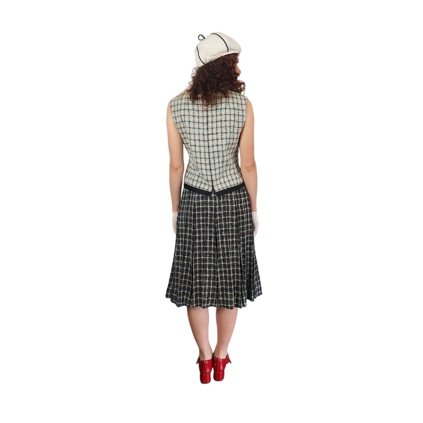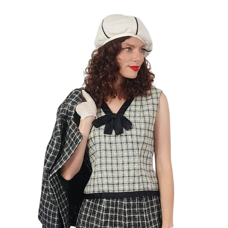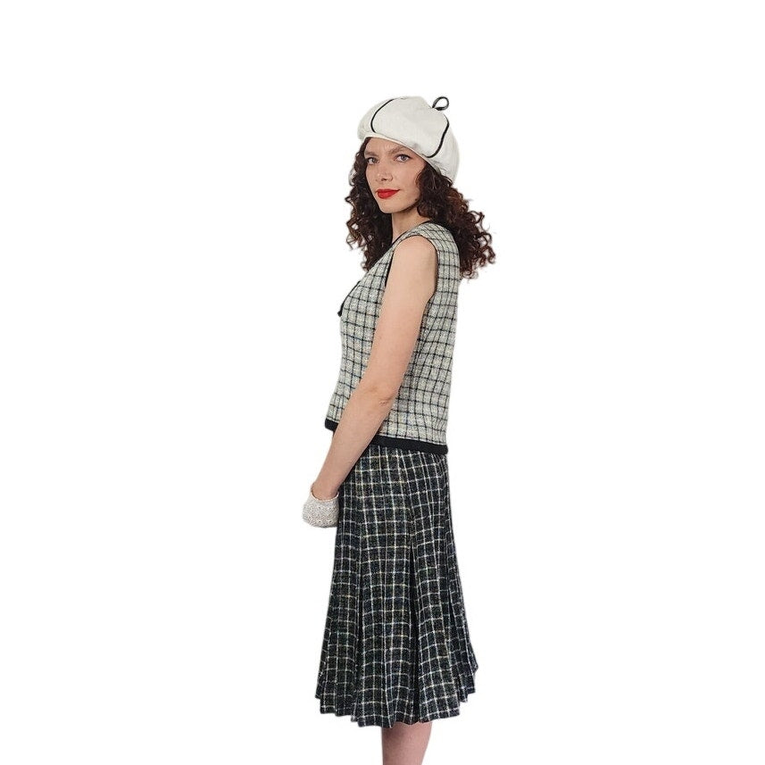 Vintage 1960s Christin Dior New York Suit Mod Three Piece Black White Check Wool