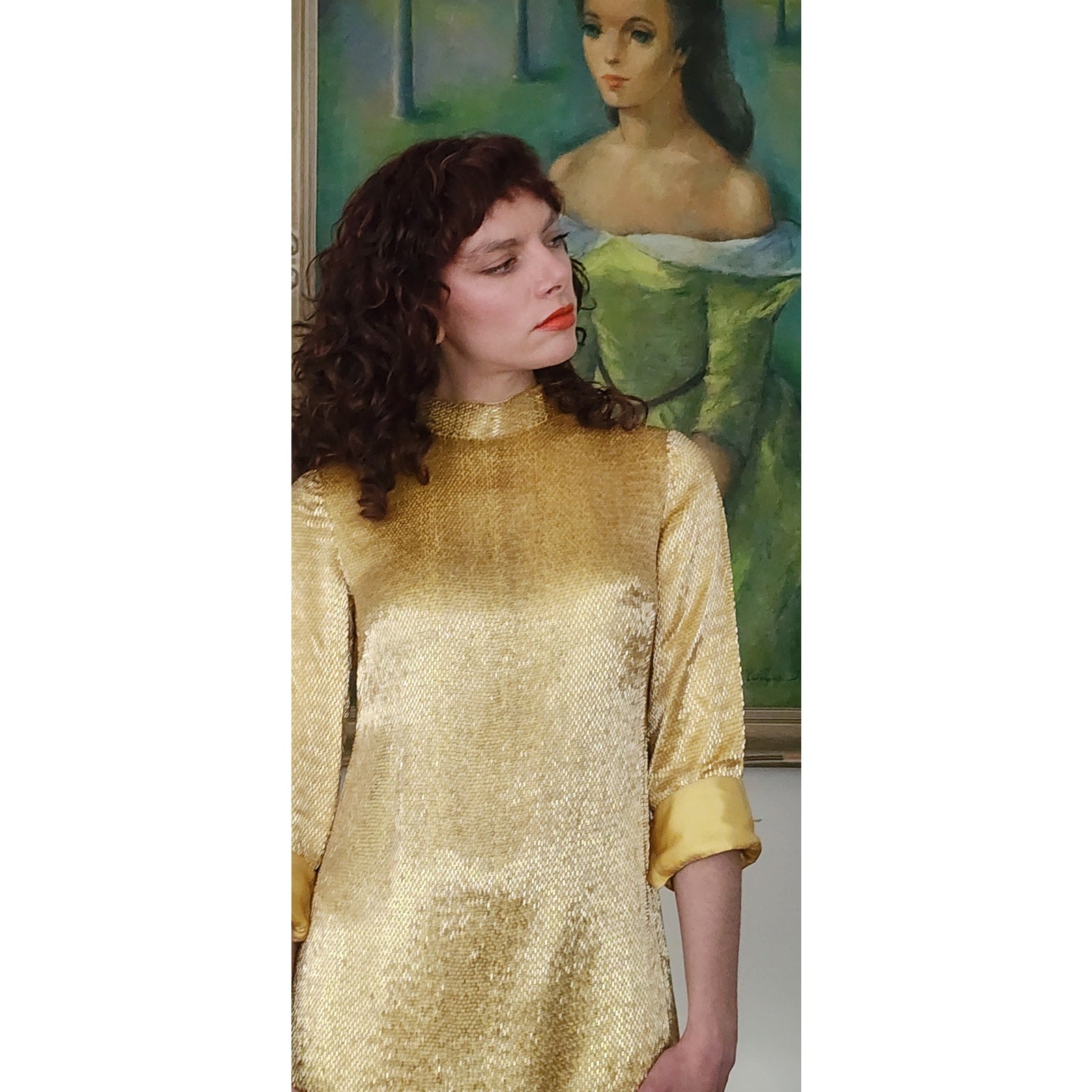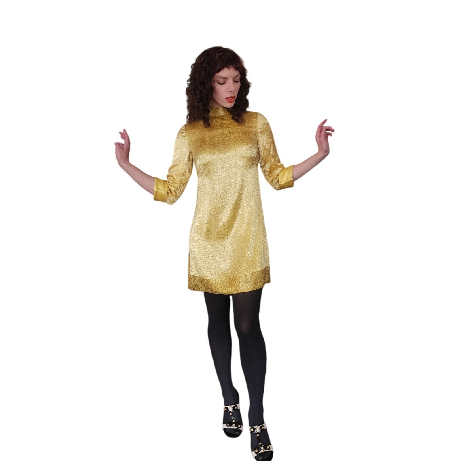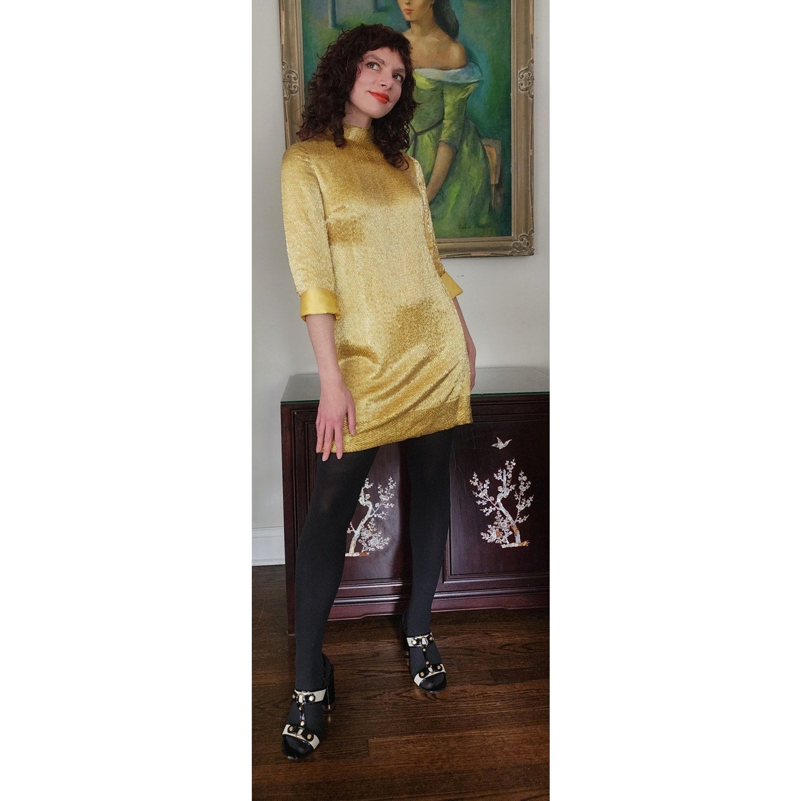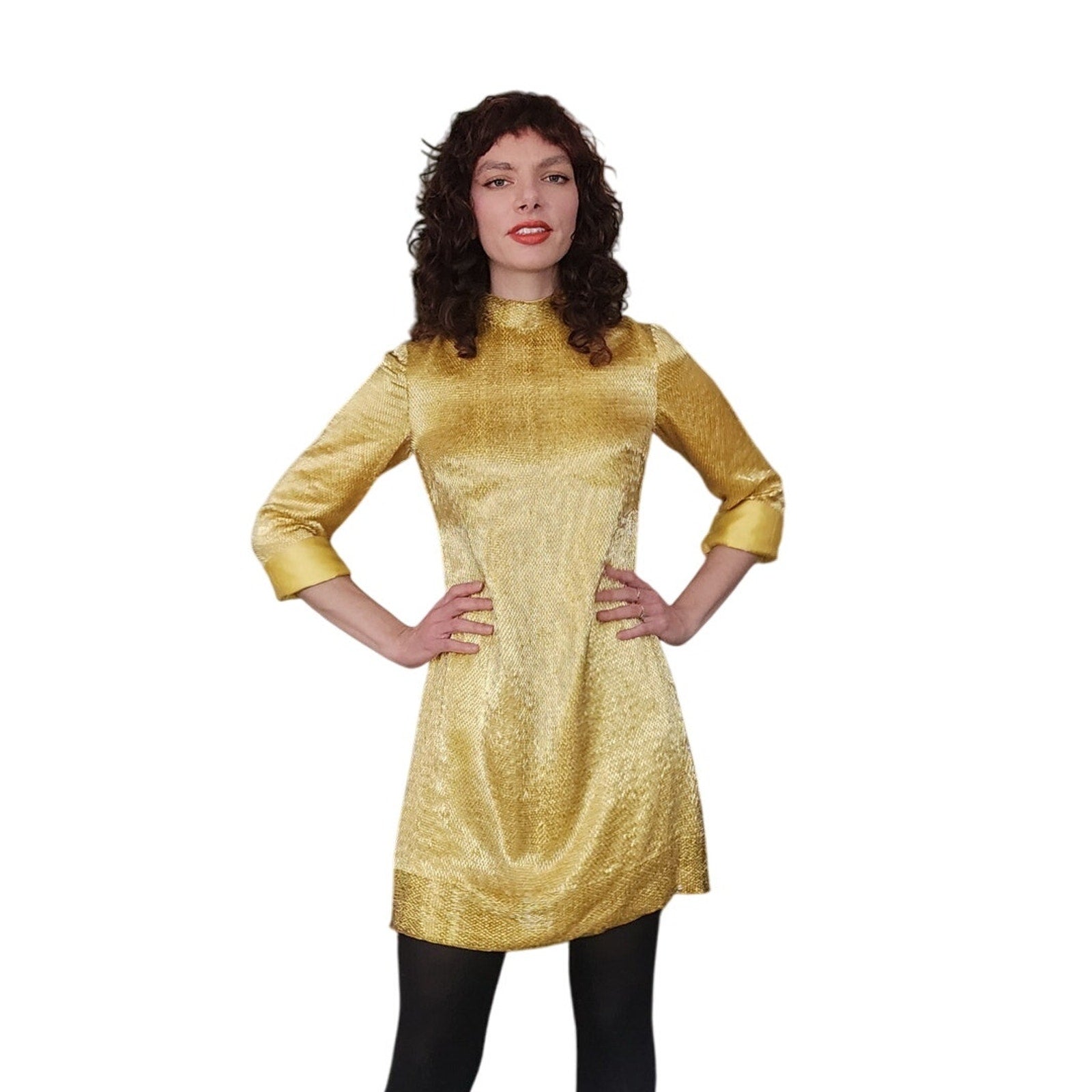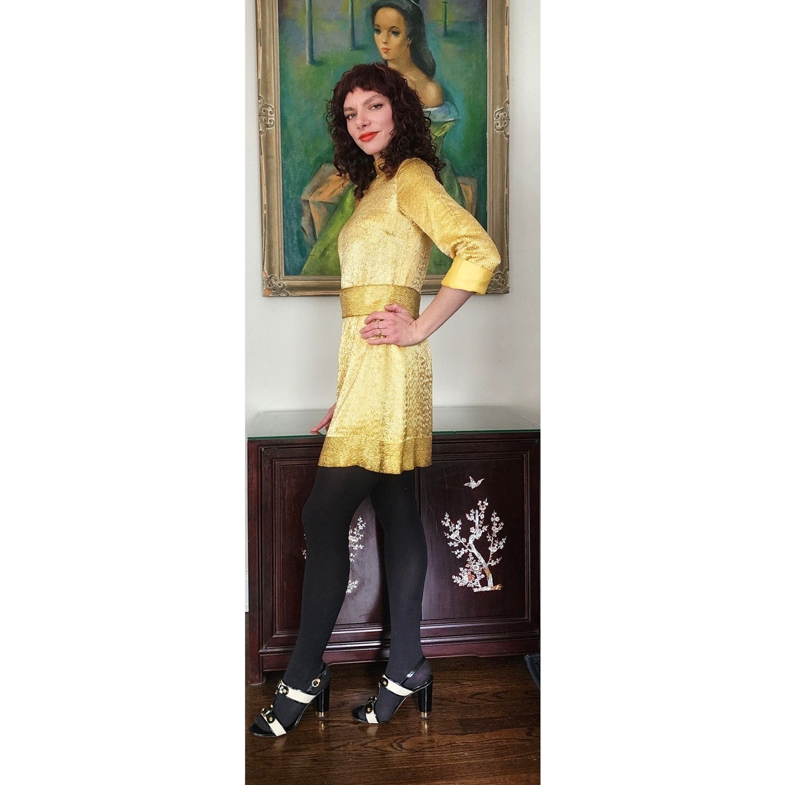 Vintage 1960s Gold Mini Dress w/Belt Doreen Lok / XS