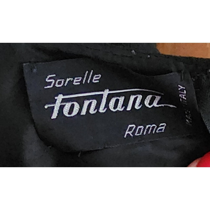 Vintage 1960s Sorelle Fontana Dress Black Rayon Crepe w/Pleated Fringe Italian Designer