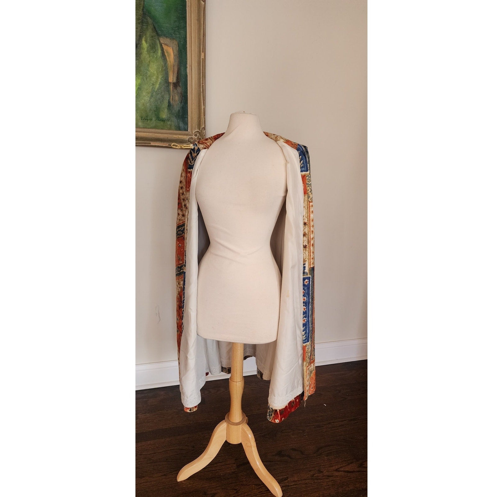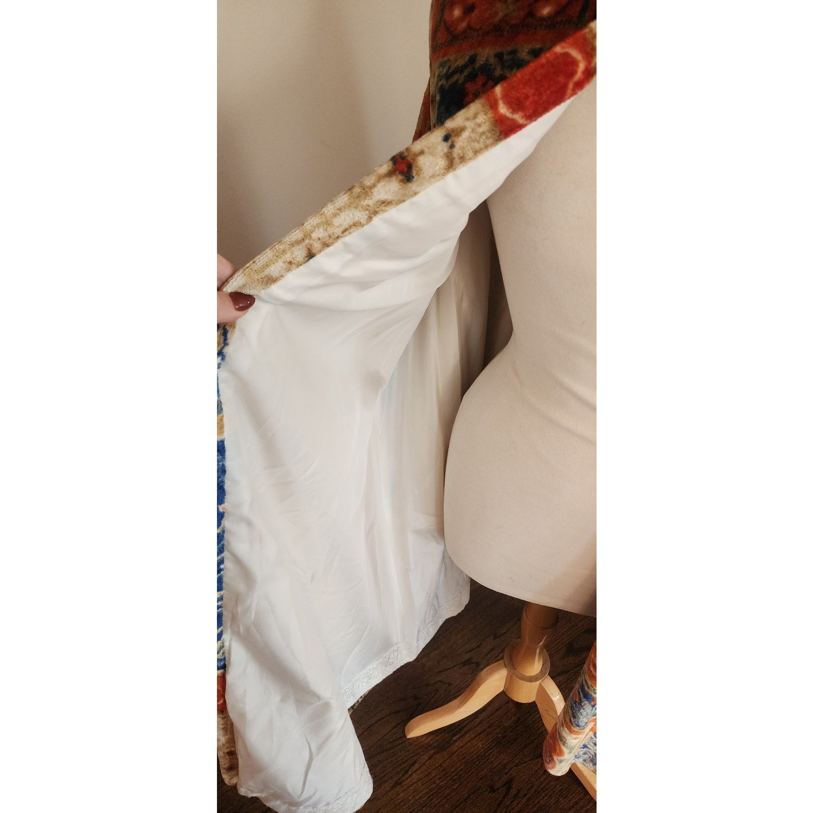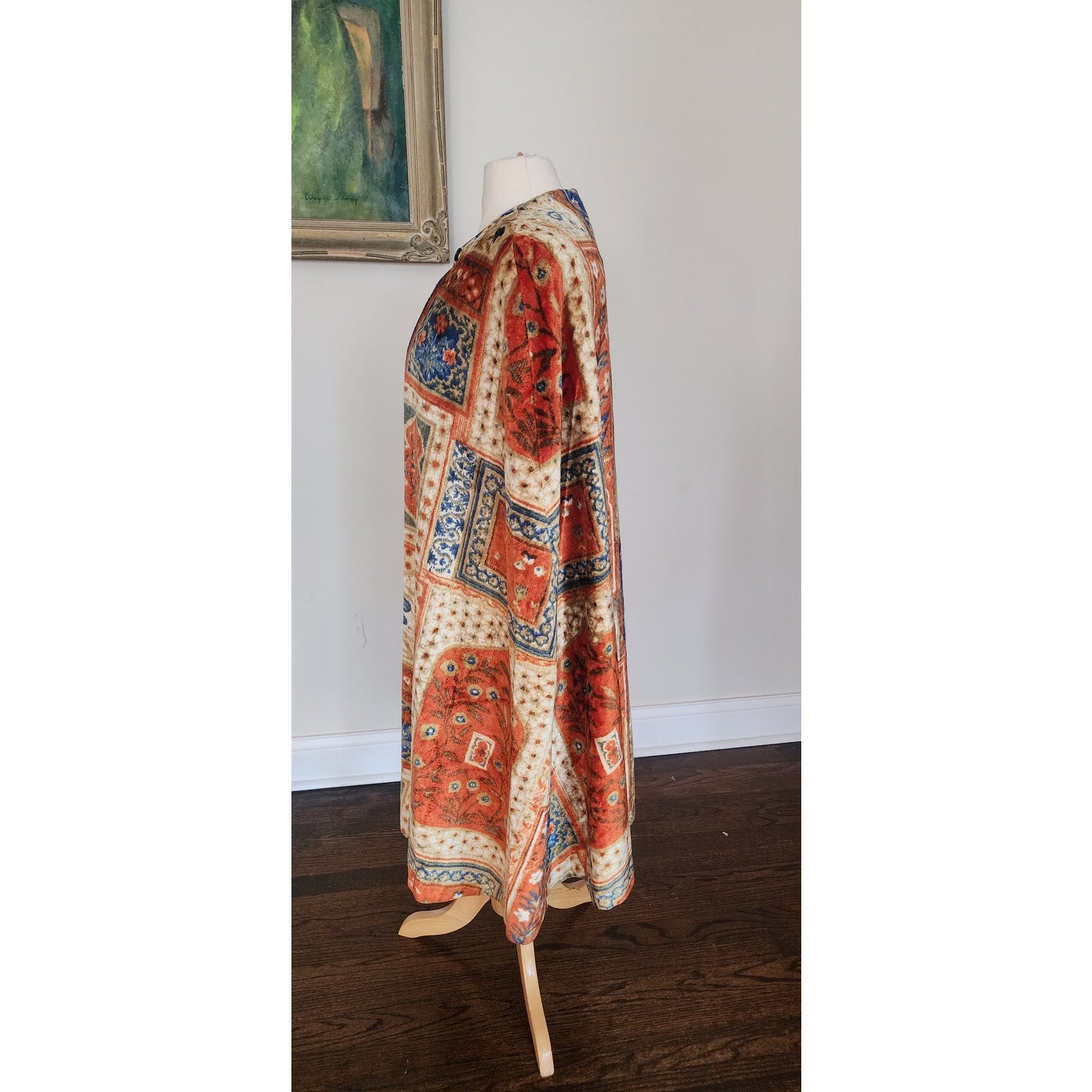 Vintage 1960s Velvet Cape Printed Tapestry Cloak Patchwork Carpet Design