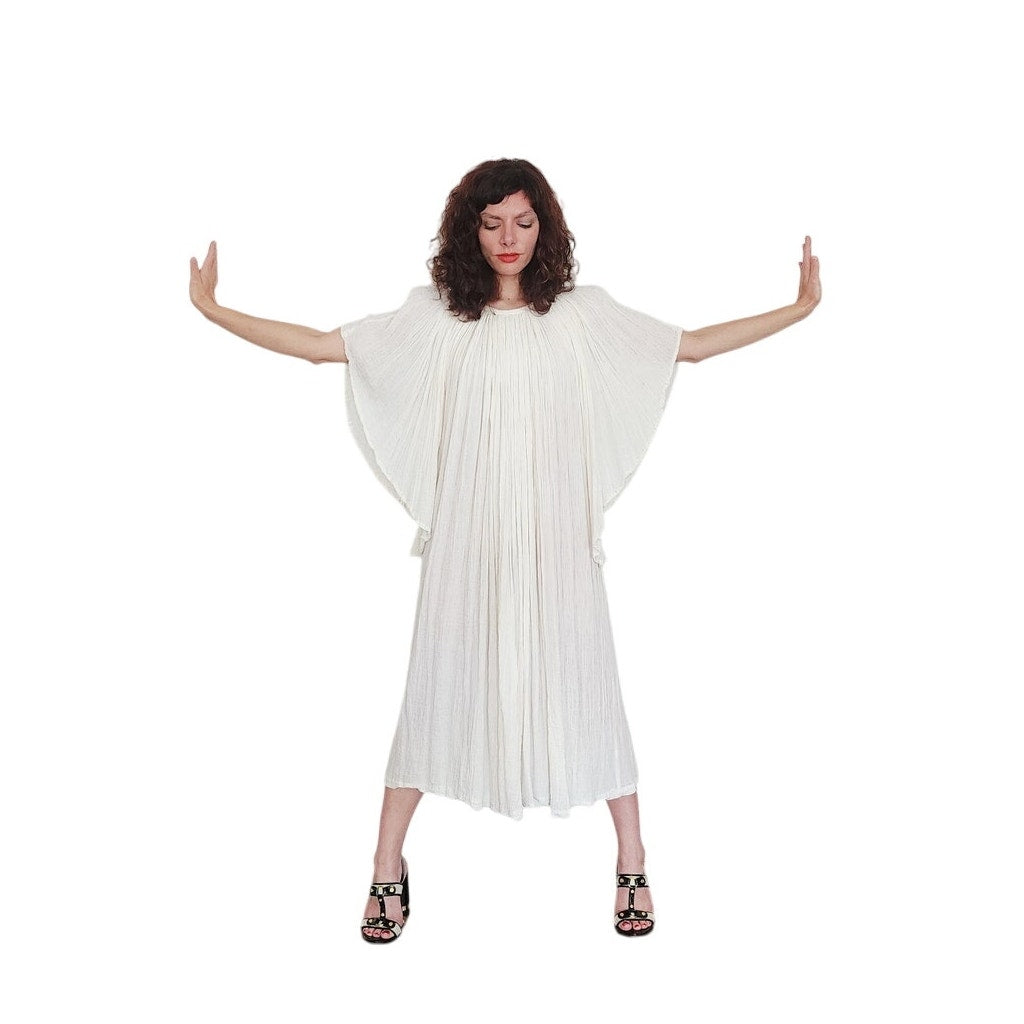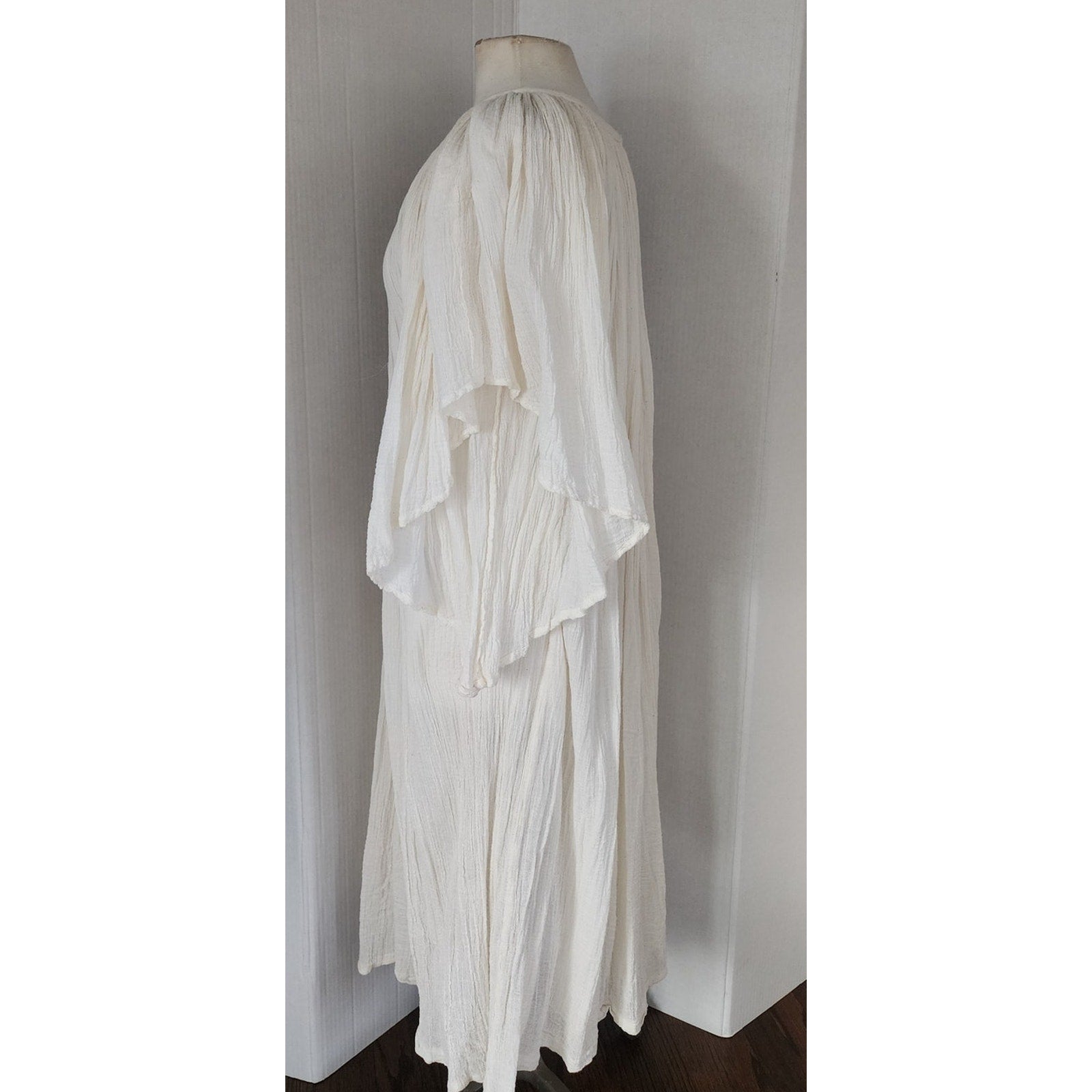 Vintage 70s Amerikan Climax Tent Dress White Cotton Gauze Angel Butterfly Sleeves