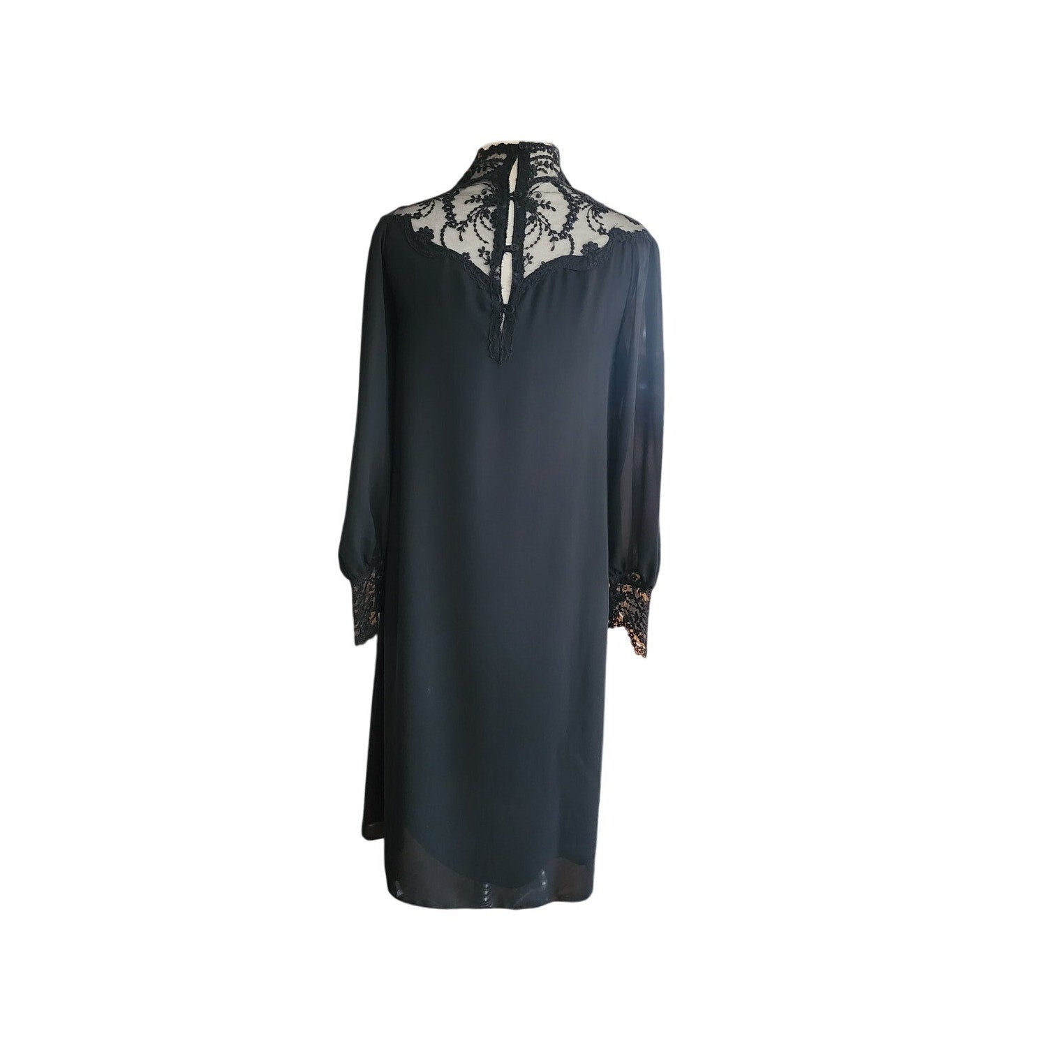 Vintage 1970s Giorgio Sant'Angelo Dress Black Silk Georgette & Lace